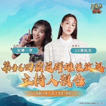 三國志 霸道》將於 11 月 13 日(三)20:00 GMT+8 於官方 Facebook 粉絲專頁與臺灣光榮特庫摩 YouTube 頻道舉辦《霸道群雄生放送》第 39 回直播活動,節目將由知名歌手及主持人 - 安娜・李、以及戶外健美知名演員 - UZ 張耘芝聯手主持,並與臺灣光榮特庫摩亞太地區董事暨副總經理劉政和先生一起與玩家們互動,並帶來好禮和宣布遊戲最新改版資訊以及活動預告。
