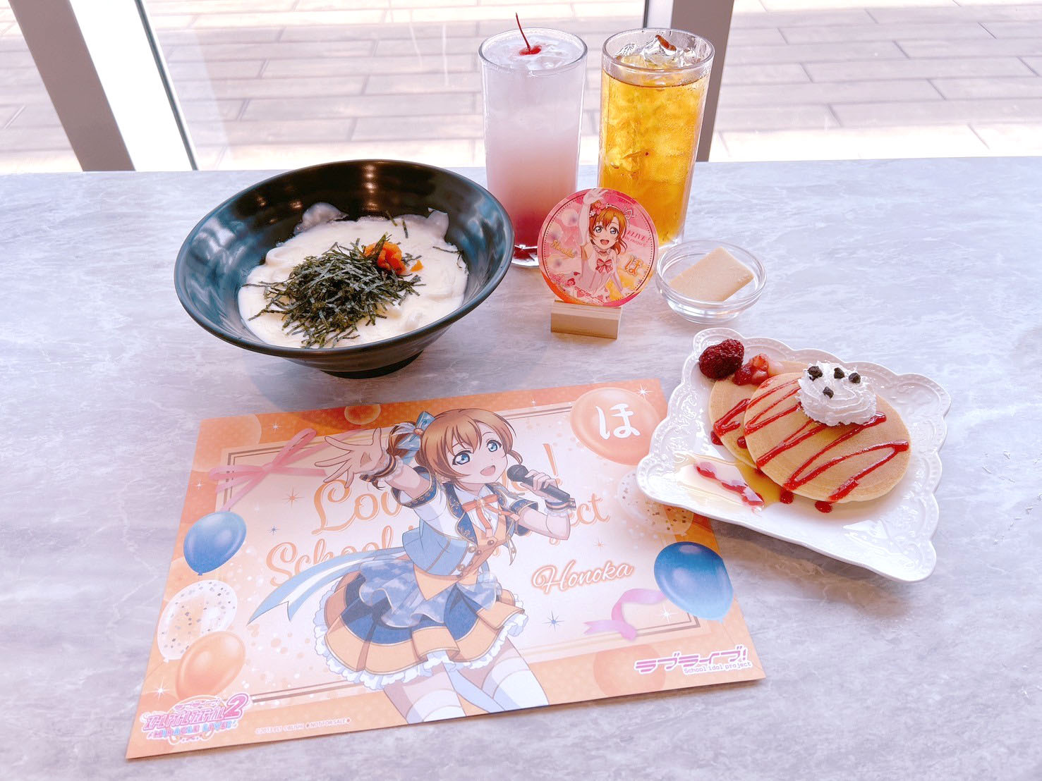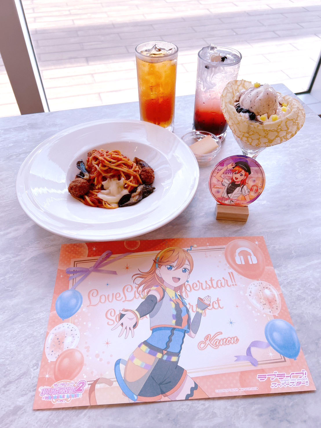 本次主題 café 集結《Love Live!》、《LoveLive! Sunshine!!》、《LoveLive! 虹咲學園學園偶像同好會》《LoveLive! Superstar!!》以及《LoveLive! 蓮之空女學院學園偶像俱樂部》,活動期間店內將推出各系列主題餐點,品嚐主餐及甜點,可獲得該系列隨機 A4 餐墊一張,享用飲料則可獲得該系列隨機杯墊一枚,特典數量有限送完為止。