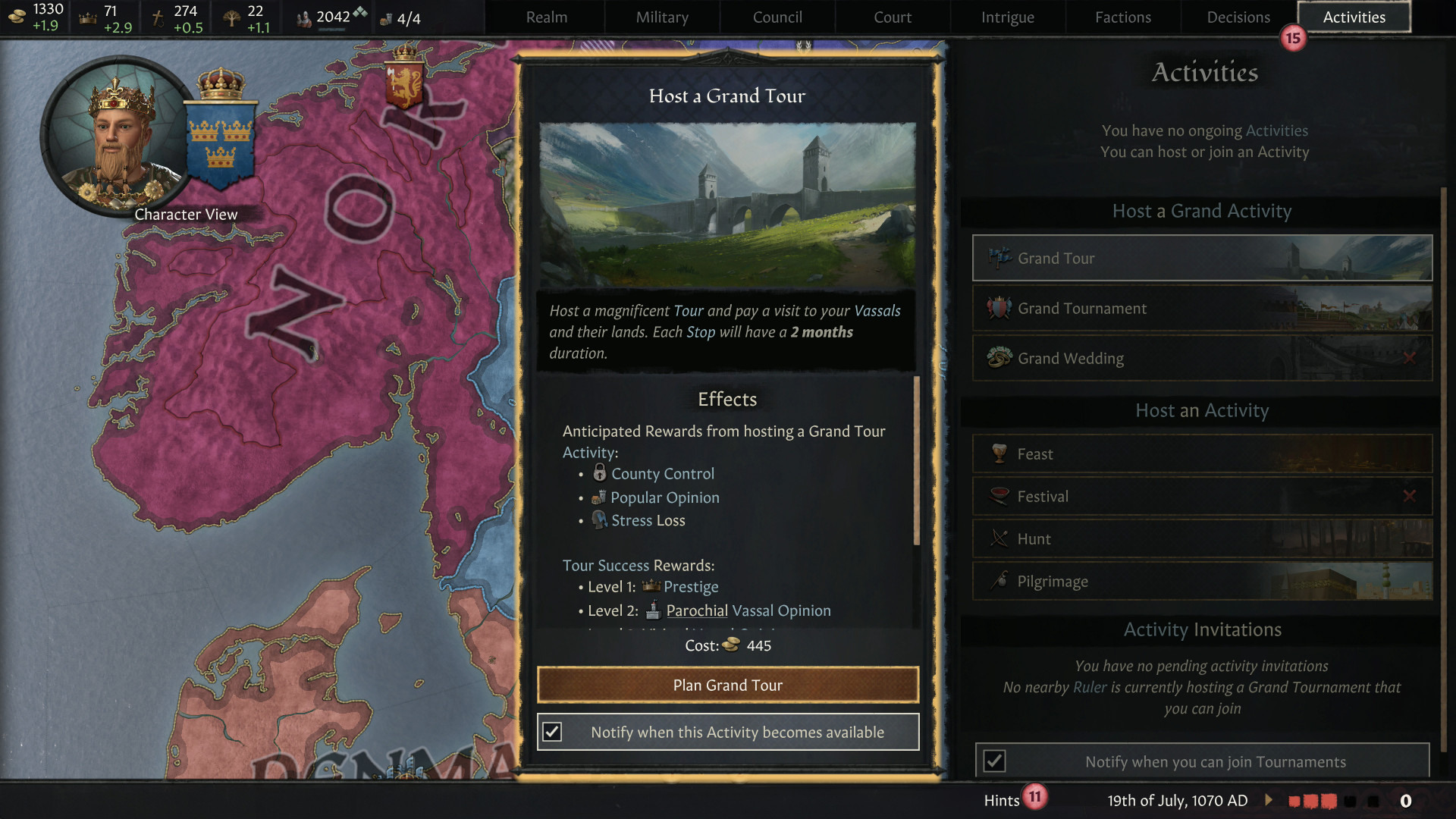 藉由舉辦一場盛大婚禮,在幕後的外交往來中獲得優勢。協商有利的婚前契約、取悅您的宮廷附庸,並在這些新的複雜儀式上獲得青睞。