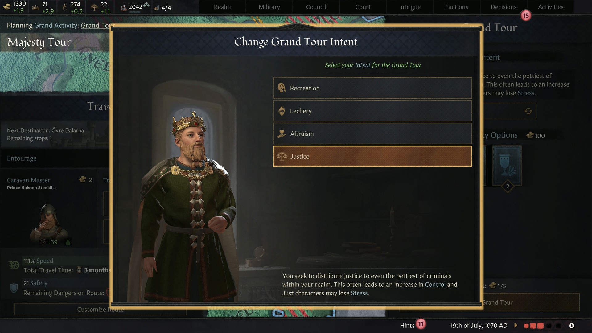 彰顯您的仁慈,就能在您王國最偏遠的角落與心存感激的臣民相見。也可以帶上一大群稅吏,向那些天高皇帝遠的附庸國索討長年的積欠。