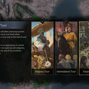 發起大型「出巡」,讓旅遊的渴望勝過您統治者的慾望,並在既危險又充滿娛樂性的國度之中尋找臣民。參與國內外眾多形式的英勇錦標賽來證明自己,也可以利用慶祝活動謀殺與您爭執不休的政敵。舉辦全新的大型活動,像是盛大的婚禮,或是刺激的獵鷹活動。不過要小心!許多慶祝活動其實是天衣無縫的障眼法,背後隱藏著對付敵人... 或家人的完美陰謀。