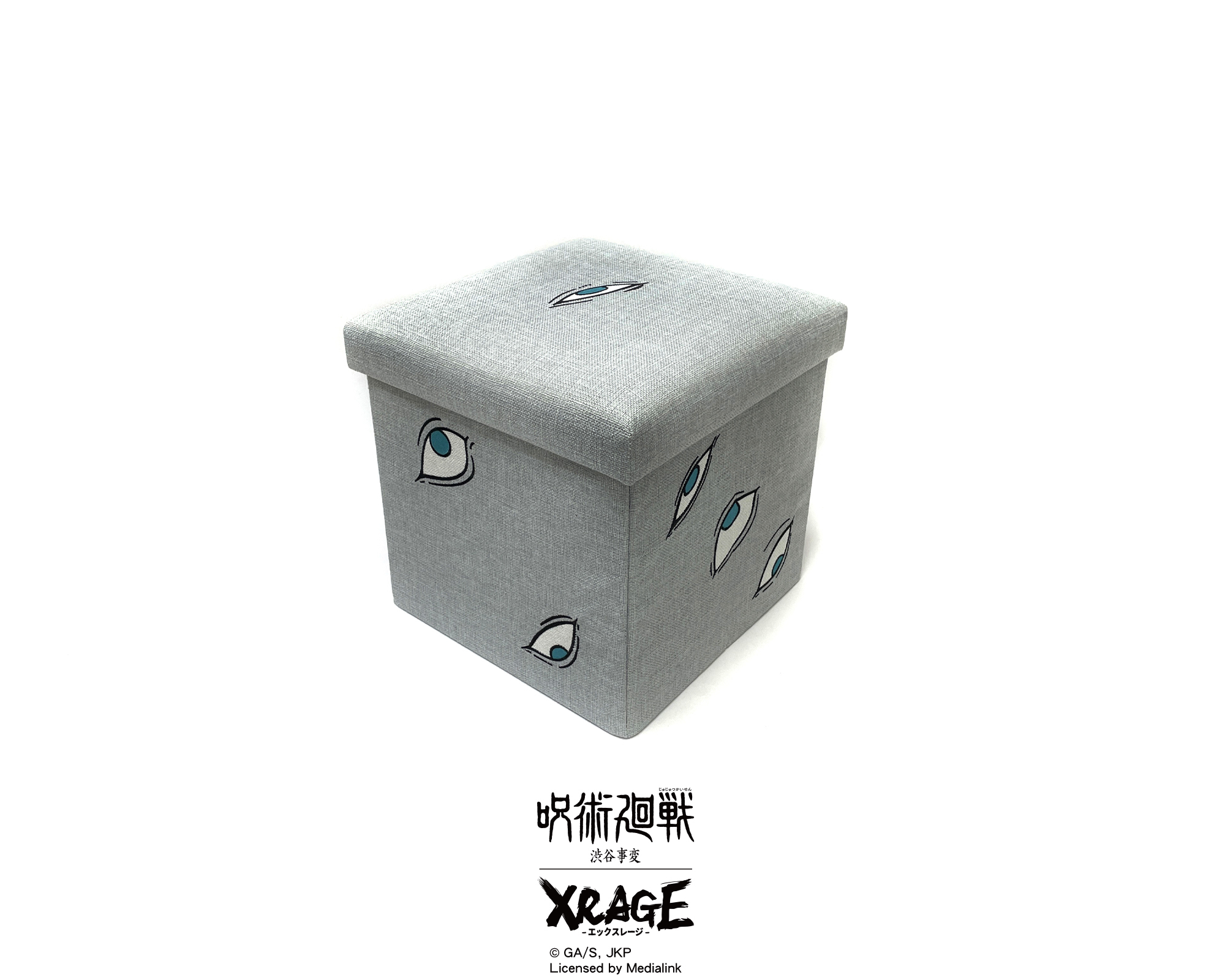 在服飾小物的部分,XRAGE 以角色形象概念推出多種飾品。另外像是滿額禮的獄門疆收納椅,則是藉由獄門疆的特色造型,搭配隱藏儲存空間打造的居家收納小物。