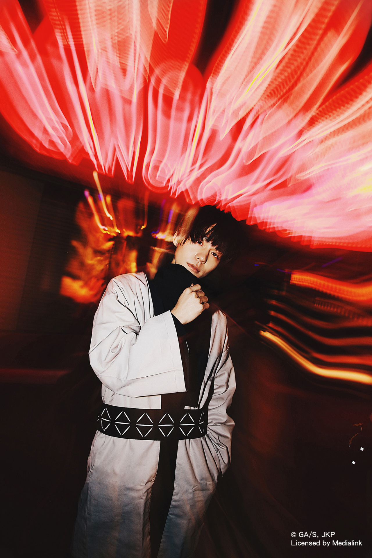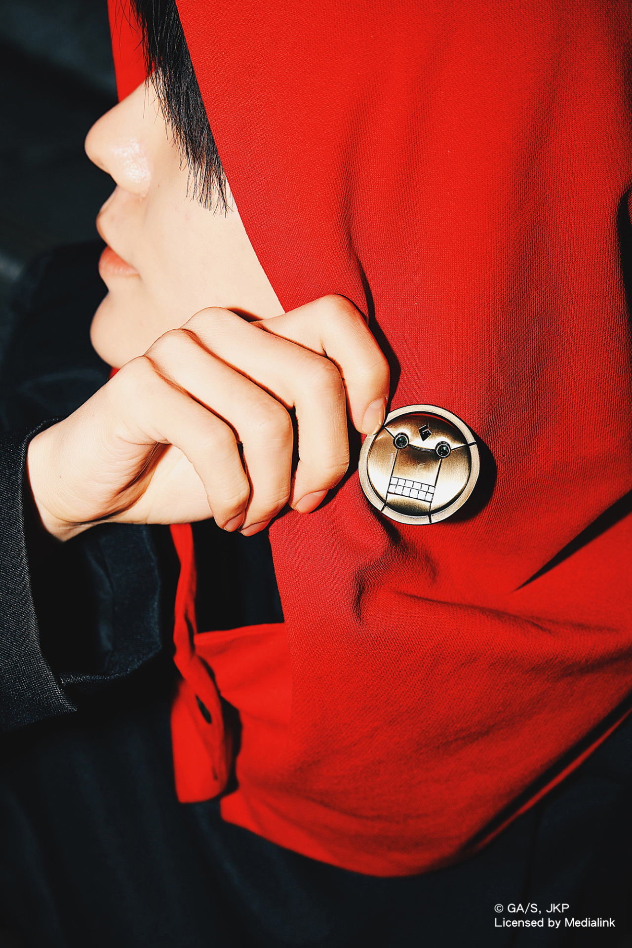 宿儺身著的白色長袍為獨家設計款之一,雙面可穿的設計呈現了「兩面宿儺」的名稱。一面白色還原經典外袍,另一面則是深色設計,以領域展開「伏魔御廚子」為主題,展現詛咒之王的強大氣場。