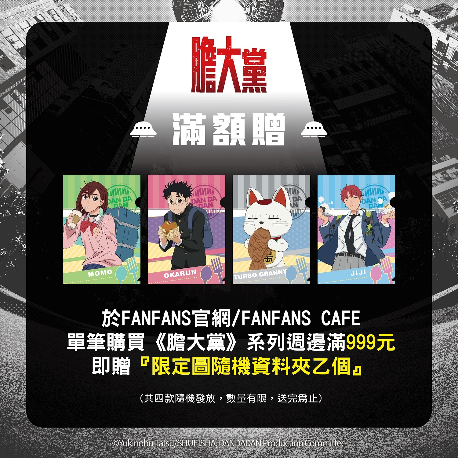 膽大黨》系列商品,單筆消費滿 999 元,就可以獲得隨機 FANFANS CAFÉ 獨家角色 L 夾乙個(數量有限、送完為止)。官網於 2024 年 11 月 28 日至 12 月 29 日購買滿額 999 元者,可獲得隨機 FANFANS CAFÉ 獨家角色 L 夾乙個,於 2024 年 12 月 30 日至 2025 年 2 月 8 日購買滿額 1,500 元者可獲得隨機角色燙銀色紙乙張,共六款還有隱藏款。