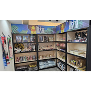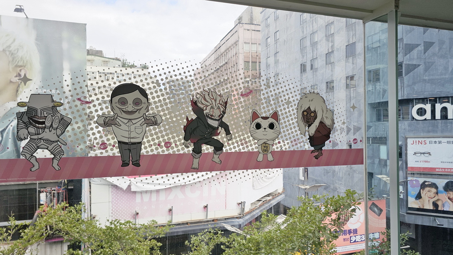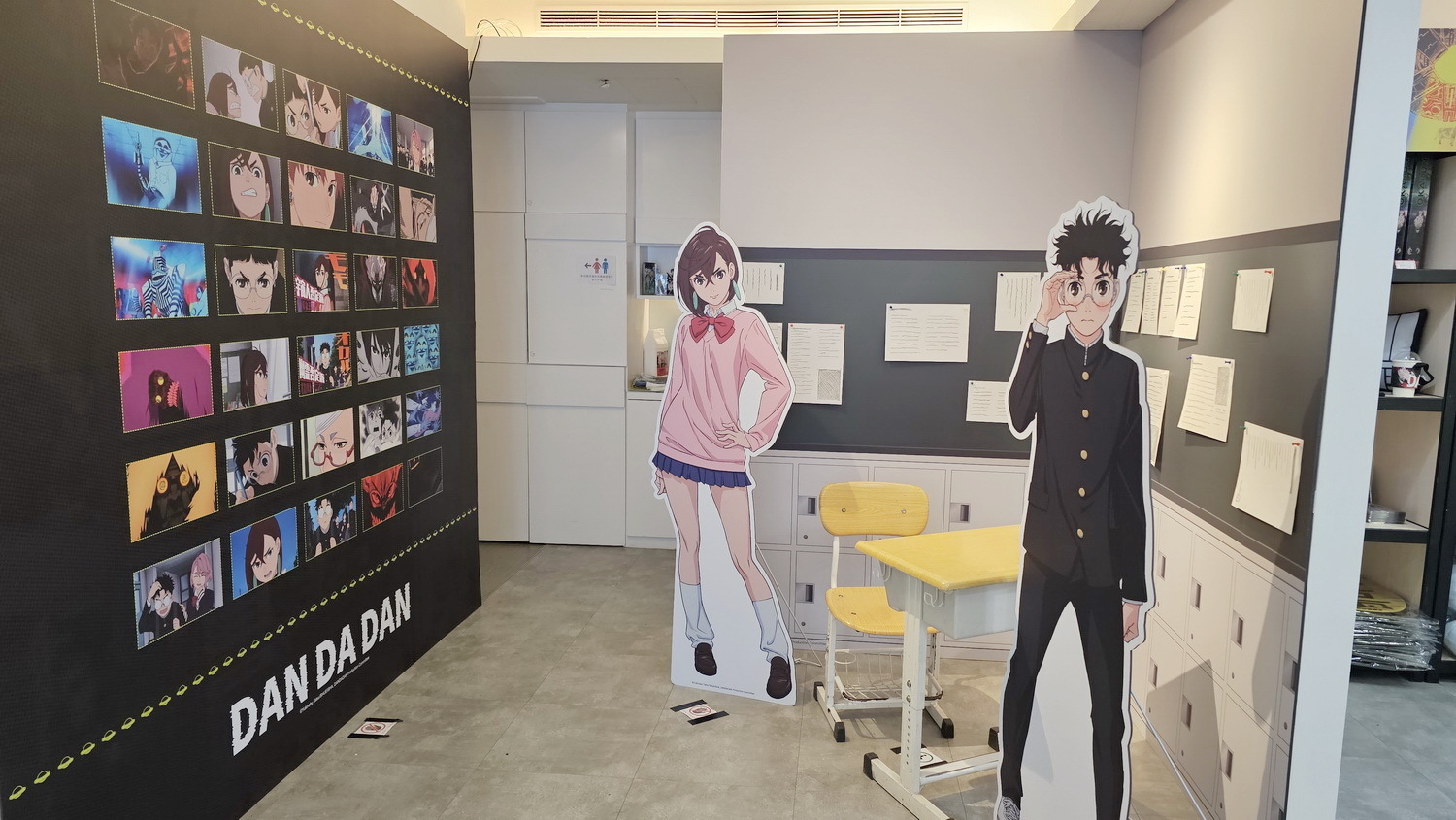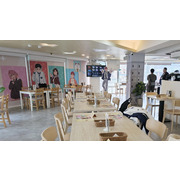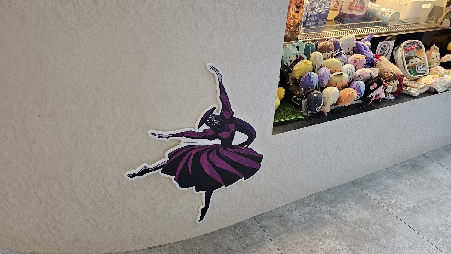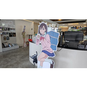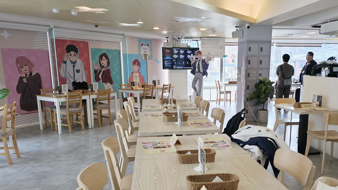 在咖啡廳中有小桃、厄卡倫、愛羅、星子、寺仁的 1:1 角色立牌立牌及場景窗貼,打造馬卡龍色系的繽紛用餐氛圍。在咖啡吧台區可以看到超多不同的幽靈與外星人們像是高速婆婆以及賽博星人等,而入口旁也有經典的劇照牆。台中店主題區重現小桃和厄卡倫搭電車的經典場景,台北店則有校園教室情景,兩位角色還分別穿上不同的造型的服裝。