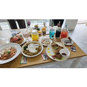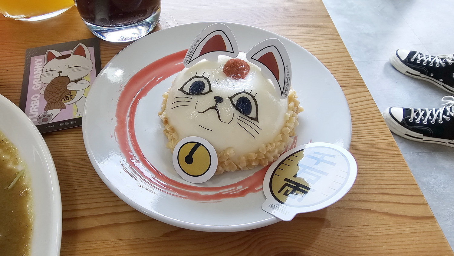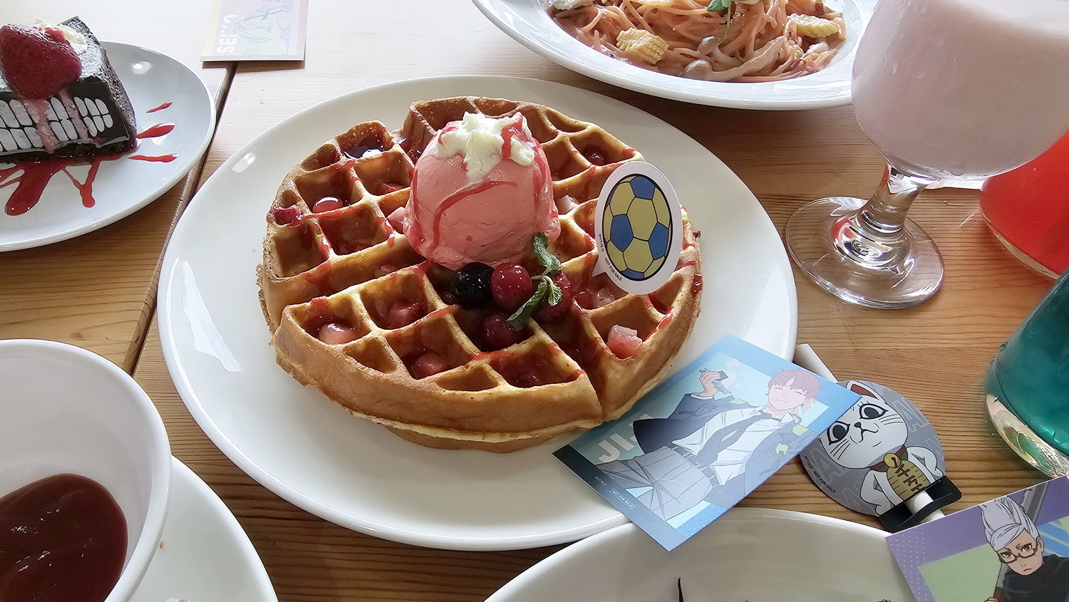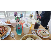 本次以角色們形象延伸美食餐點,共推出了四道主餐,四道甜點及六款飲品。主餐推出小桃的「幽靈咖喱飯」、厄卡倫的「幽浮漢堡」、星子的「奶油蛋包飯」、愛羅的「粉紅義大利麵」,甜點部分有「高速厄卡倫蛋糕」、星子的「芒果聖代」、高速婆婆「檸檬起司球」、寺仁的「足球鬆餅」,而每道主餐及甜點都會附上對應角色的角色小卡以及 Q 板插卡,吃完還能帶回家收藏紀念。
