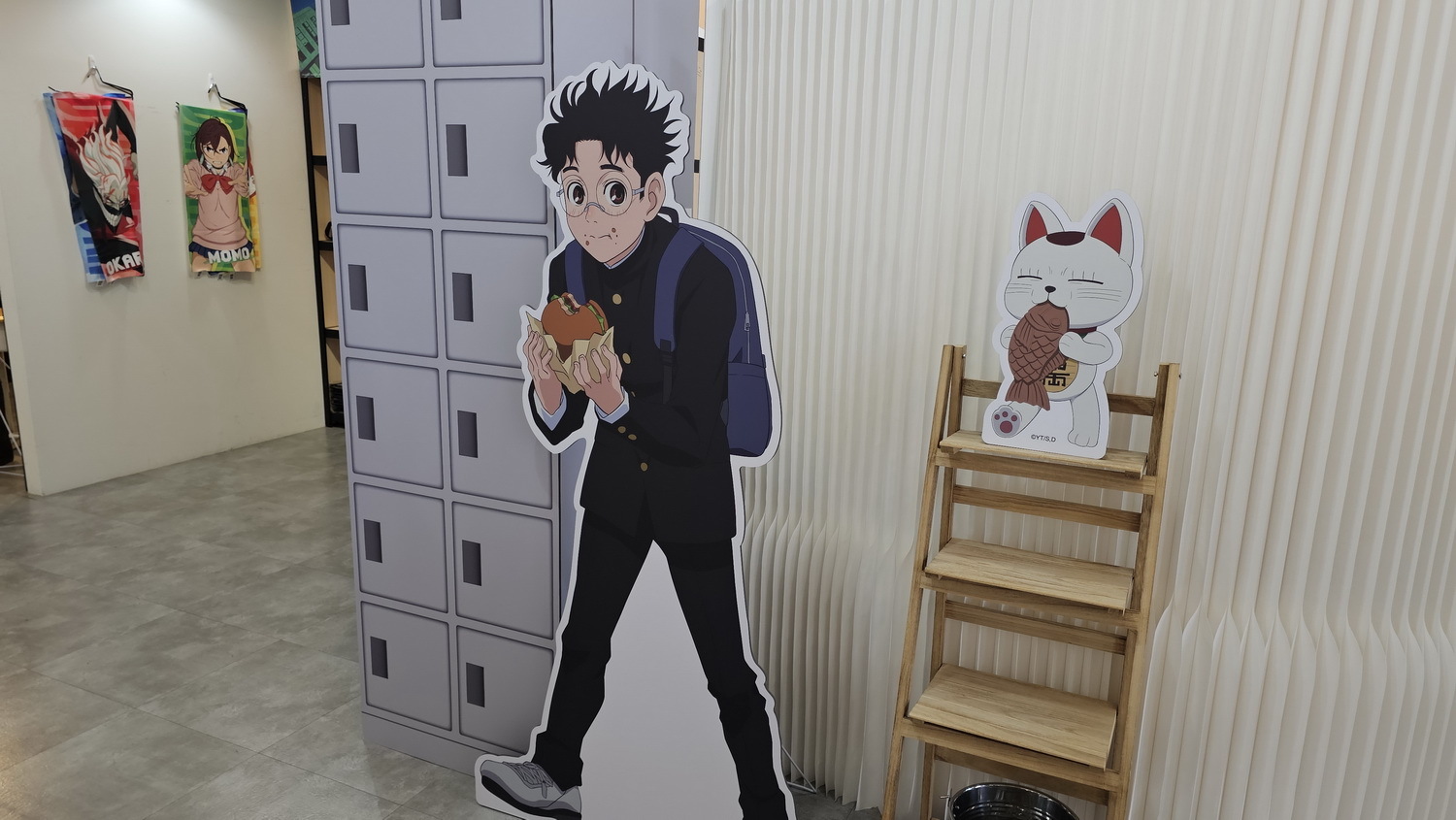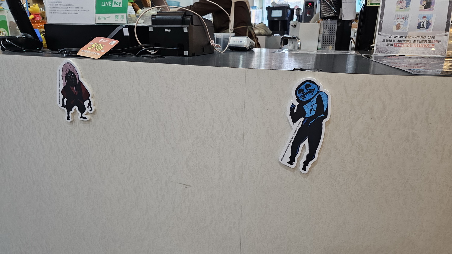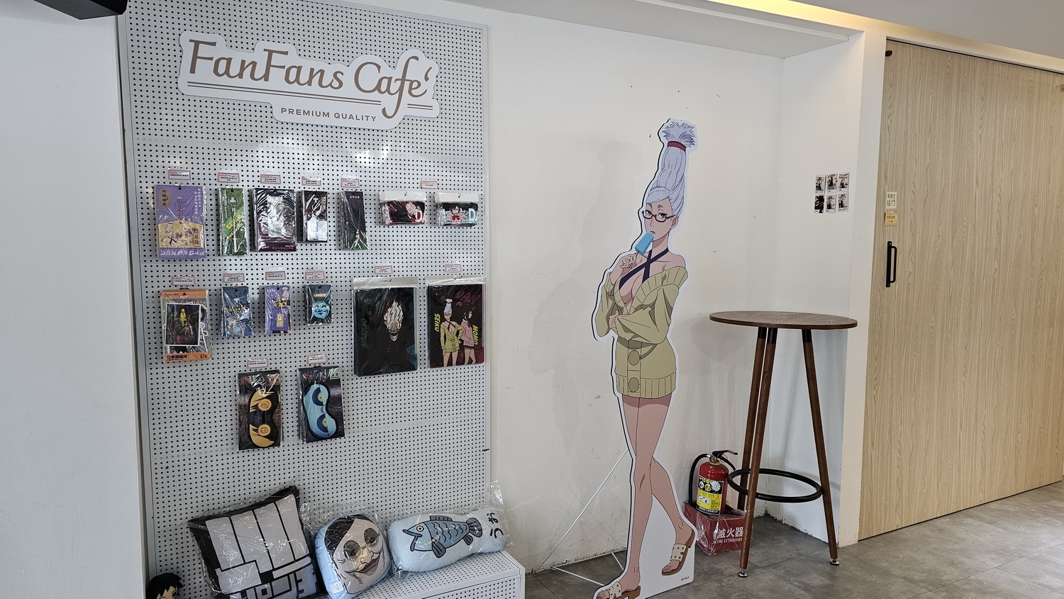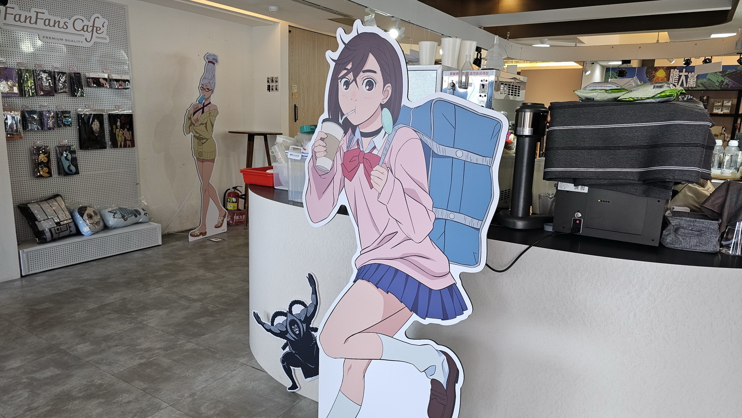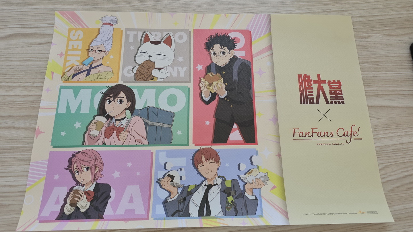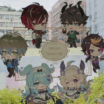 這次合作的最大亮點為 FANFANS CAFÉ 首發的全新立繪。這些角色設計由日方繪製,並未在日本公開發表。像是現場的角色立牌、盲抽閃鑽徽章、壓克力鑰匙圈、防水貼紙、壓克力立牌、滿額贈 L 夾,而角色們手上都拿著不同的食物,風格上也有別於動畫中色彩強烈對比鮮明的普普風,運用活潑的馬卡龍色系呈現,展現角色在校園生活的輕鬆氛圍。