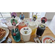 飲品則推出小桃的 「哈蜜瓜蘇打」、厄卡倫的「黑色藍柑橘氣泡飲」、愛羅的「草莓牛奶」、寺仁的「草莓檸檬茶」,以及星子的「芒果四季春奶蓋」與高速婆婆的「印刷奶蓋紅茶」。期間來店消費任一飲品,不僅能獲得角色吸管套,同時會贈送兩種不同風格的角色杯墊乙個(共 16 款,恕不挑款)。