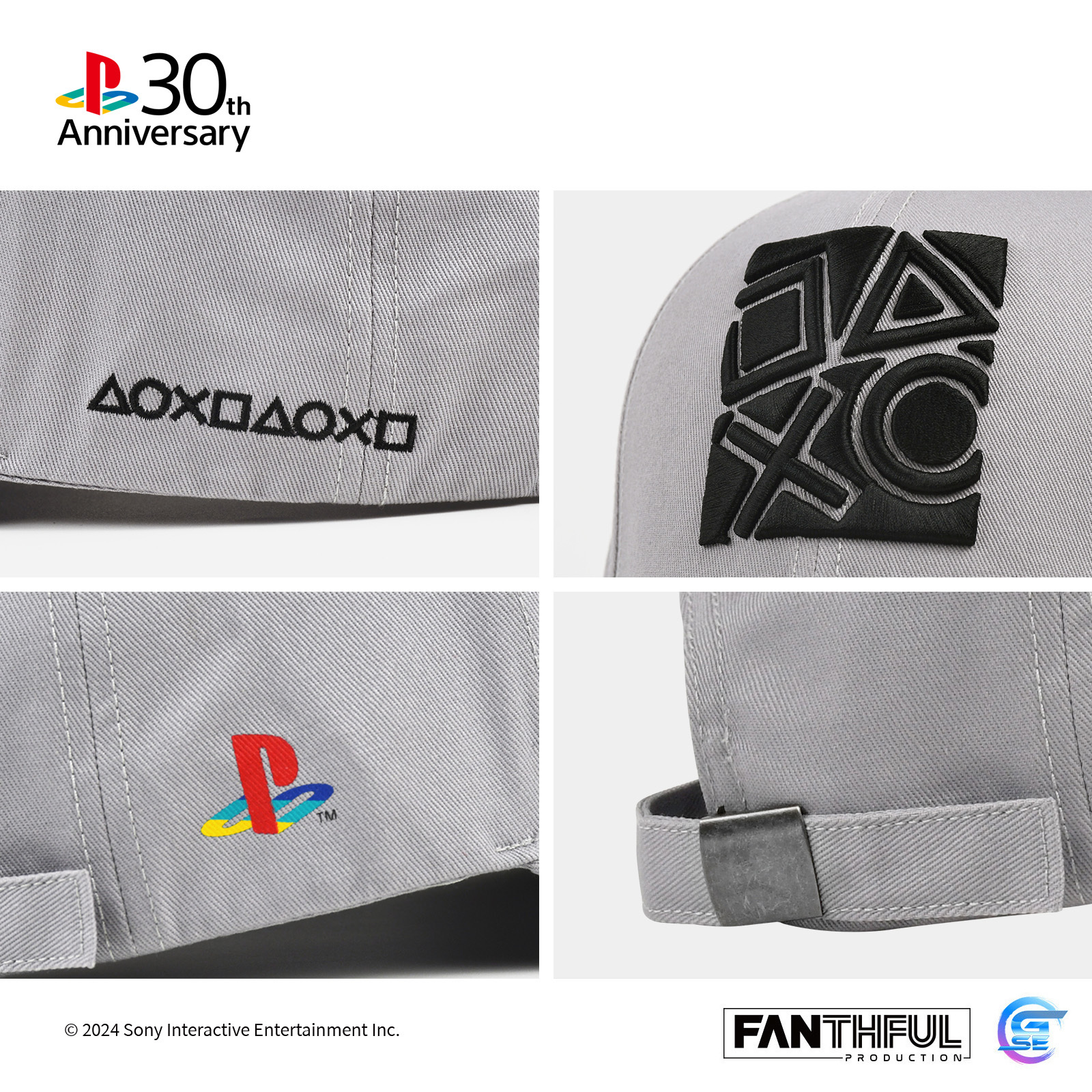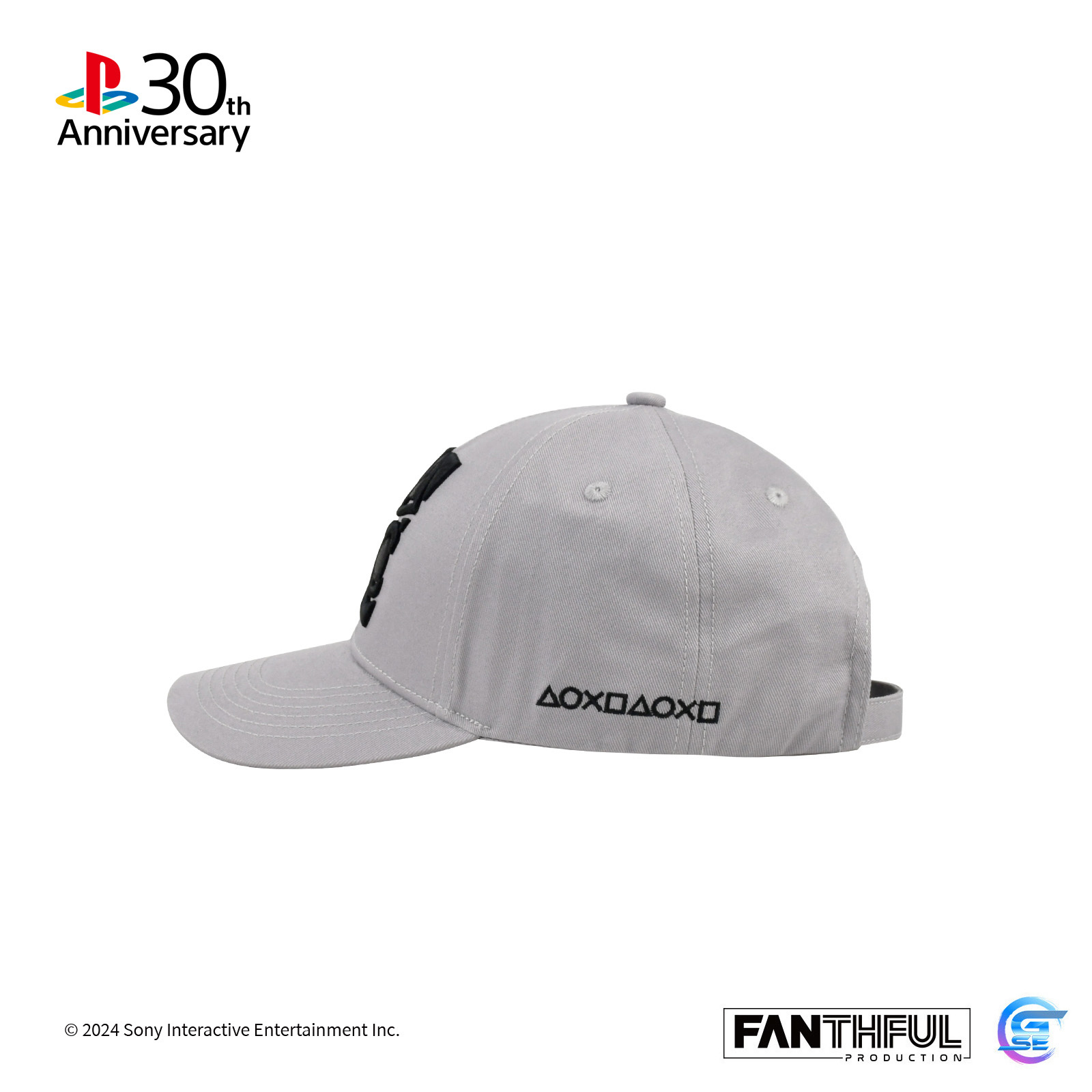 帽身採用了初代 PlayStation 的主機色調,展現復古風味。正面刺繡 PlayStation Shapes Logo「△○×□」,整體層次感十足。帽子的左側和右側則分別裝飾有「△○×□」的排列圖案,及經典四色 PlayStation Family Mark。