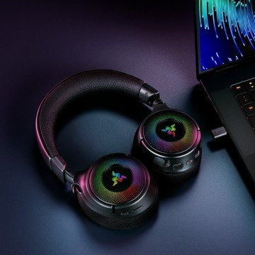 此次 Razer 推出的酷洛米系列遊戲周邊中,包括融合酷洛米招牌耳朵與自訂耳罩 RBG 燈光效果的藍芽耳機,具備 Rzaer