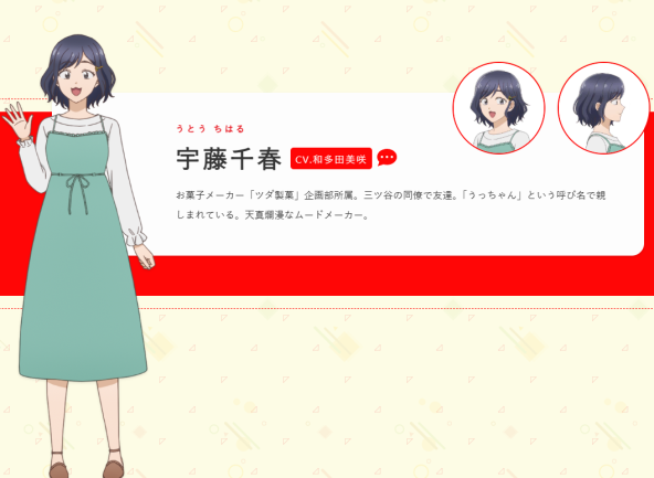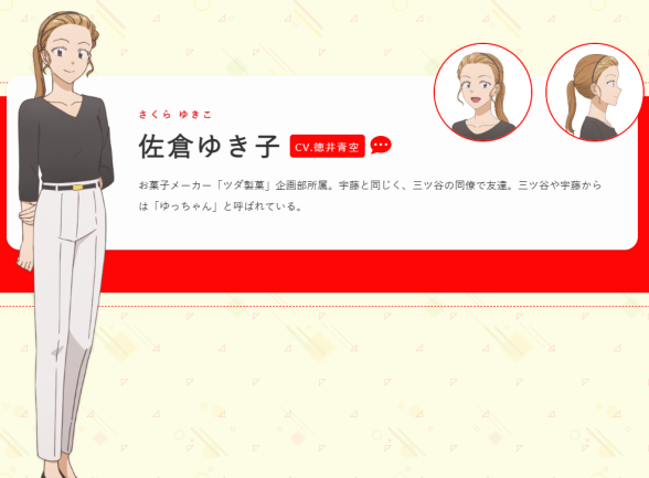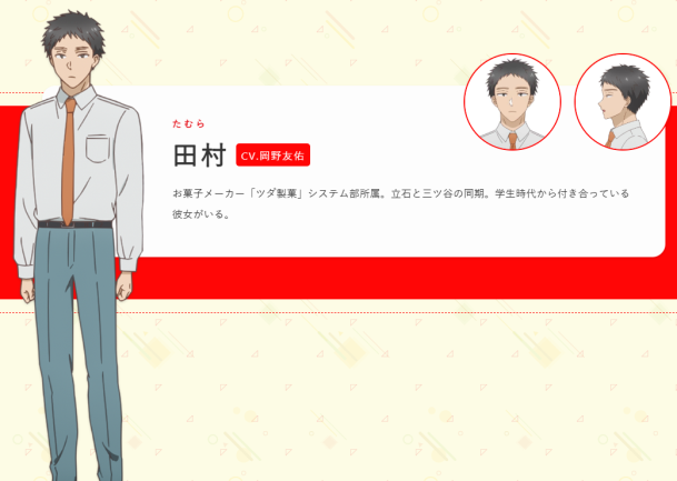 聲優陣容則包括山下誠一郎(飾:立石真直)、宮本侑芽(飾:三谷結衣)、伊藤静(飾:早川静乃)、土田玲央(飾:染井恵介)、大地葉(飾:森園麻里亞)、和多田美咲(飾:宇藤千春)、德井青空(飾:佐倉雪子)、利根健太朗(飾:三田逸郎)、小野賢章(飾:鈴木誠也)、三木眞一郎(飾:切林宏海)、前内孝文(飾:倉松)、岡野友佑(飾:田村)…等人。