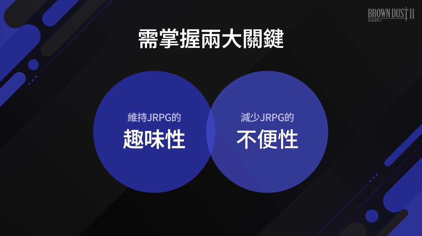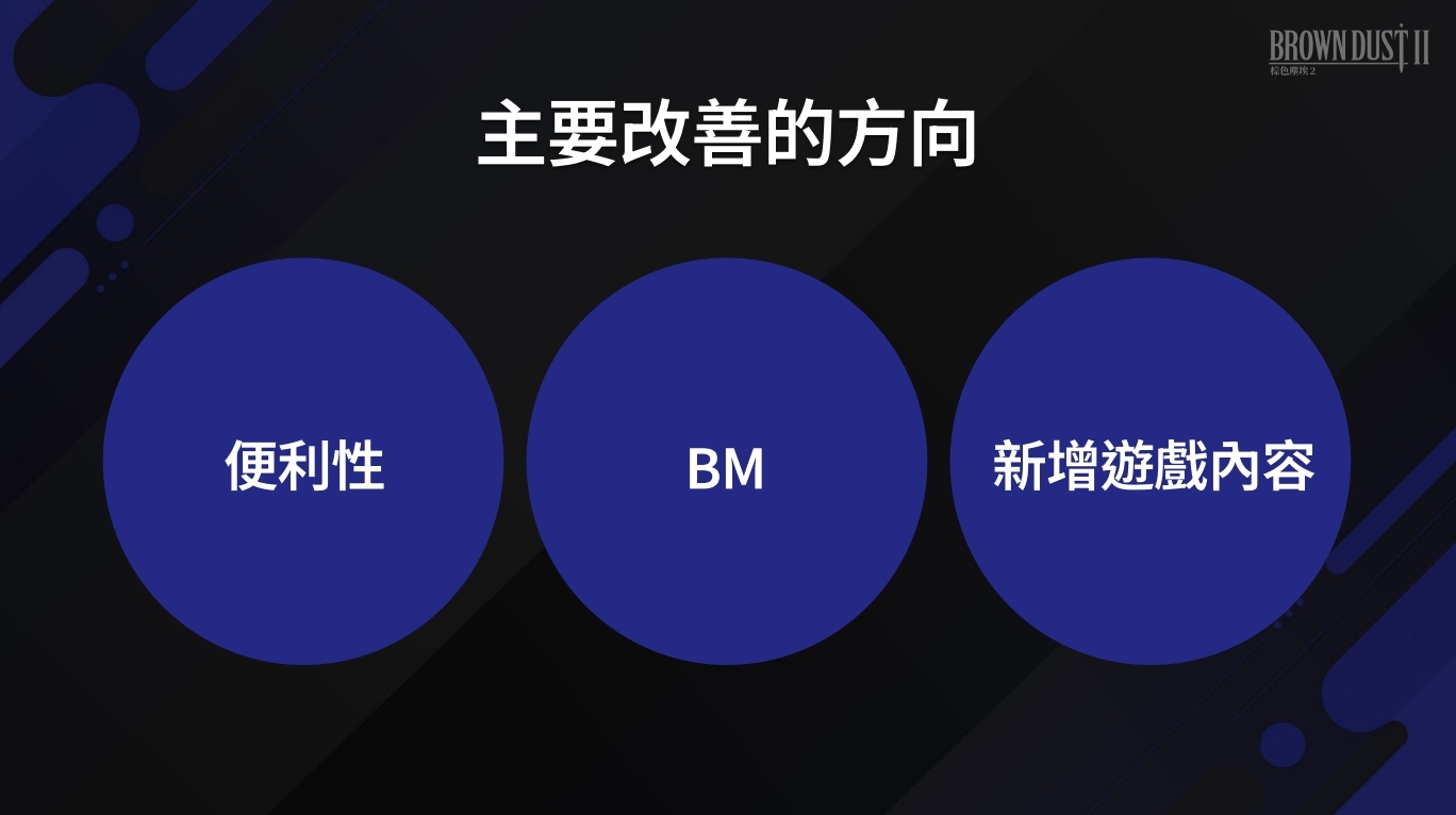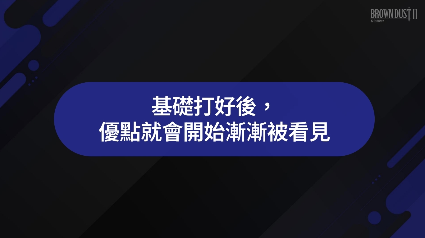 棕色塵埃 2》1.5 週年以來的服務歷程。如果遊戲從上市就能相當順利,自然沒有什麼問題,但如果是與我們碰到類似情況的開發者們,也希望能以此做為參考的版本。當遊戲指標持續下降時,最重要的就是轉型,最主要就是如何止跌回升,創造反彈的機會。我們必須站在用戶的立場,雖然 PD 需要有所堅持,但在遊戲營運的階段如何維護與玩家們的關係是更為重要的。此外,如果遊戲遭到玩家們冷落,這就是遊戲存在某種問題的訊號,必須循序漸進的改善。PD 的浪漫只有在基本功夫扎實的時候,才能夠大放異彩。」