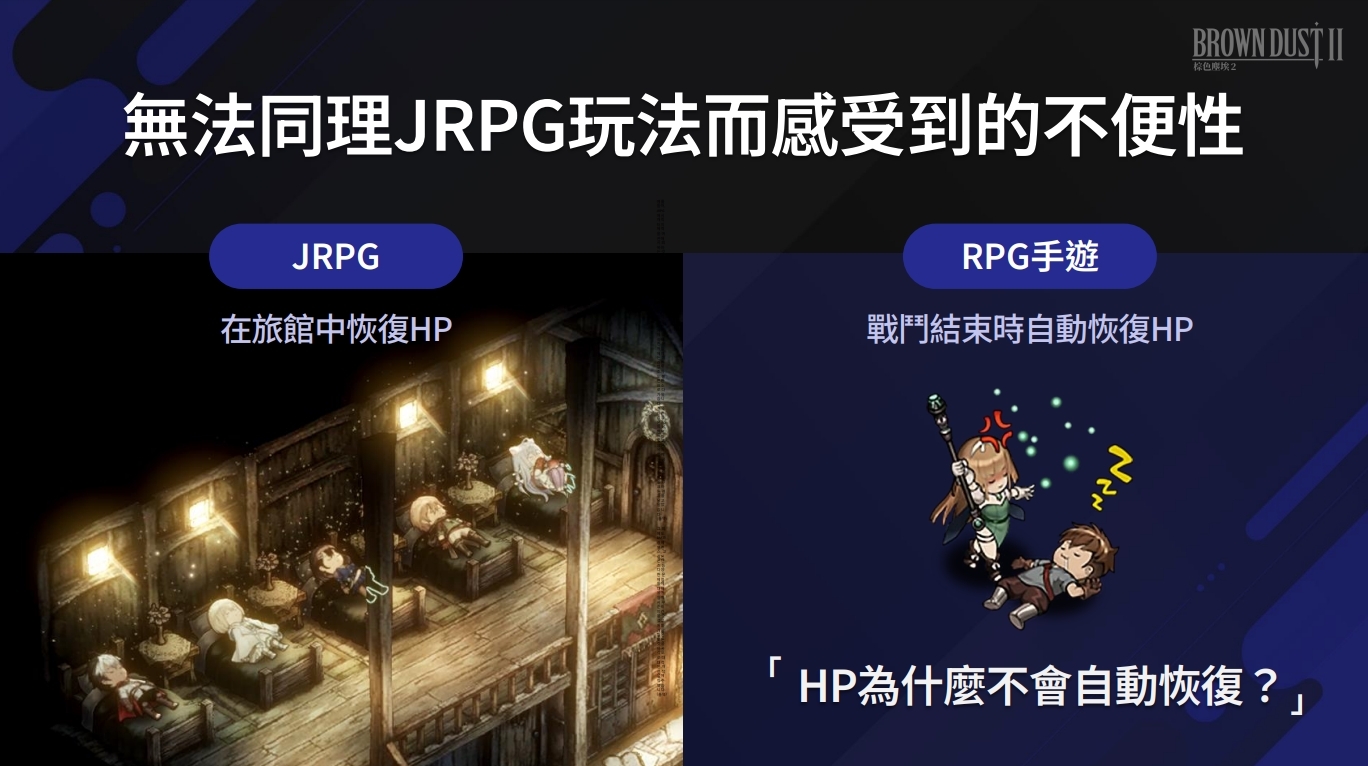 「舉例來說,在 JRPG 中前往旅館休息恢復體力對於熟悉的玩家來說,是一種默認的規則。不過對於手機遊戲玩家來說,造成了許多不便。說到底這種感性只是 PD 的浪漫,無法與玩家產生共鳴。」除此之外,玩家們也對於遊戲內的經濟均衡、BM 等枯竭的內容提出意見,於是開發團隊抱持著改變一切的覺悟,展開了大規模的改善工程。