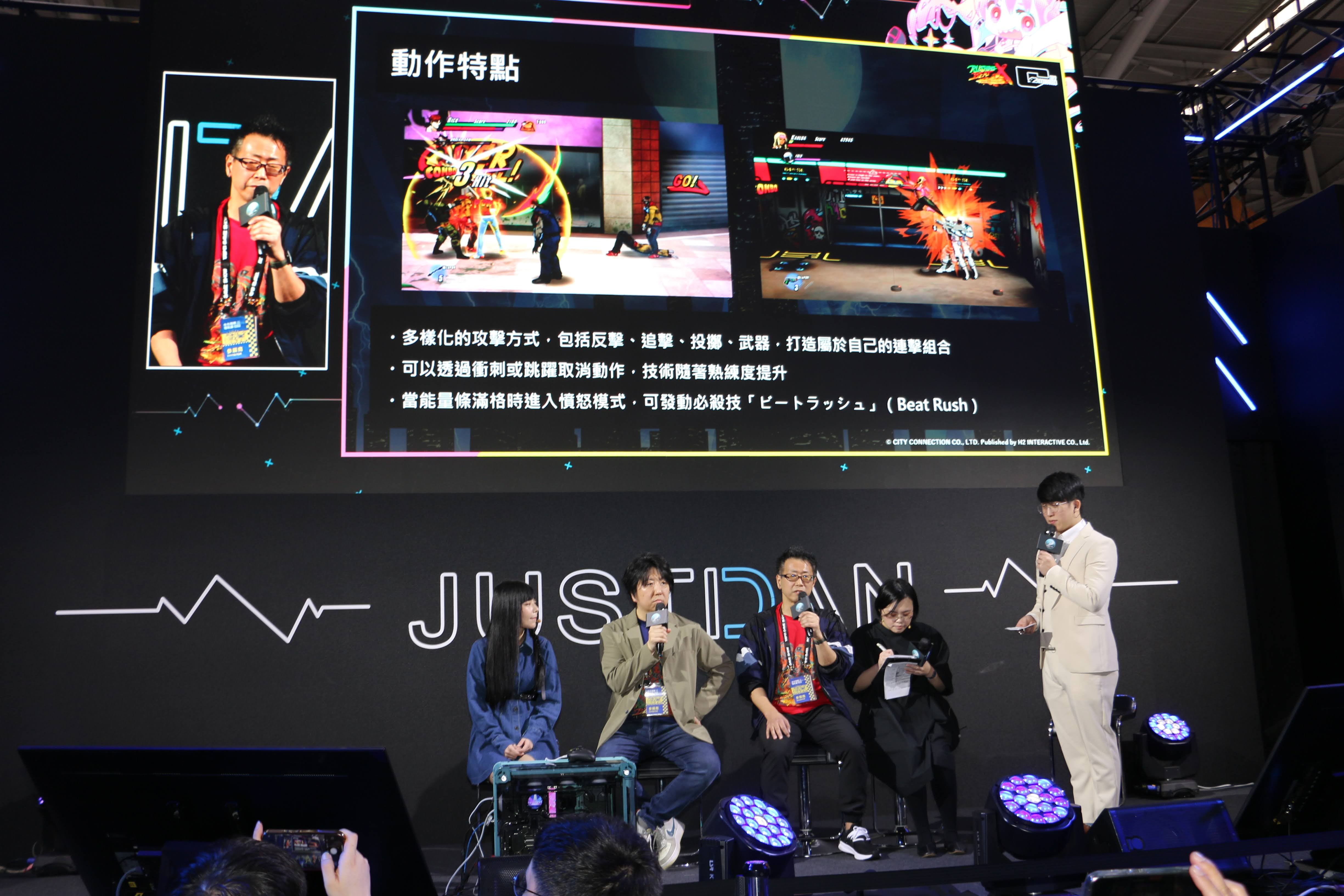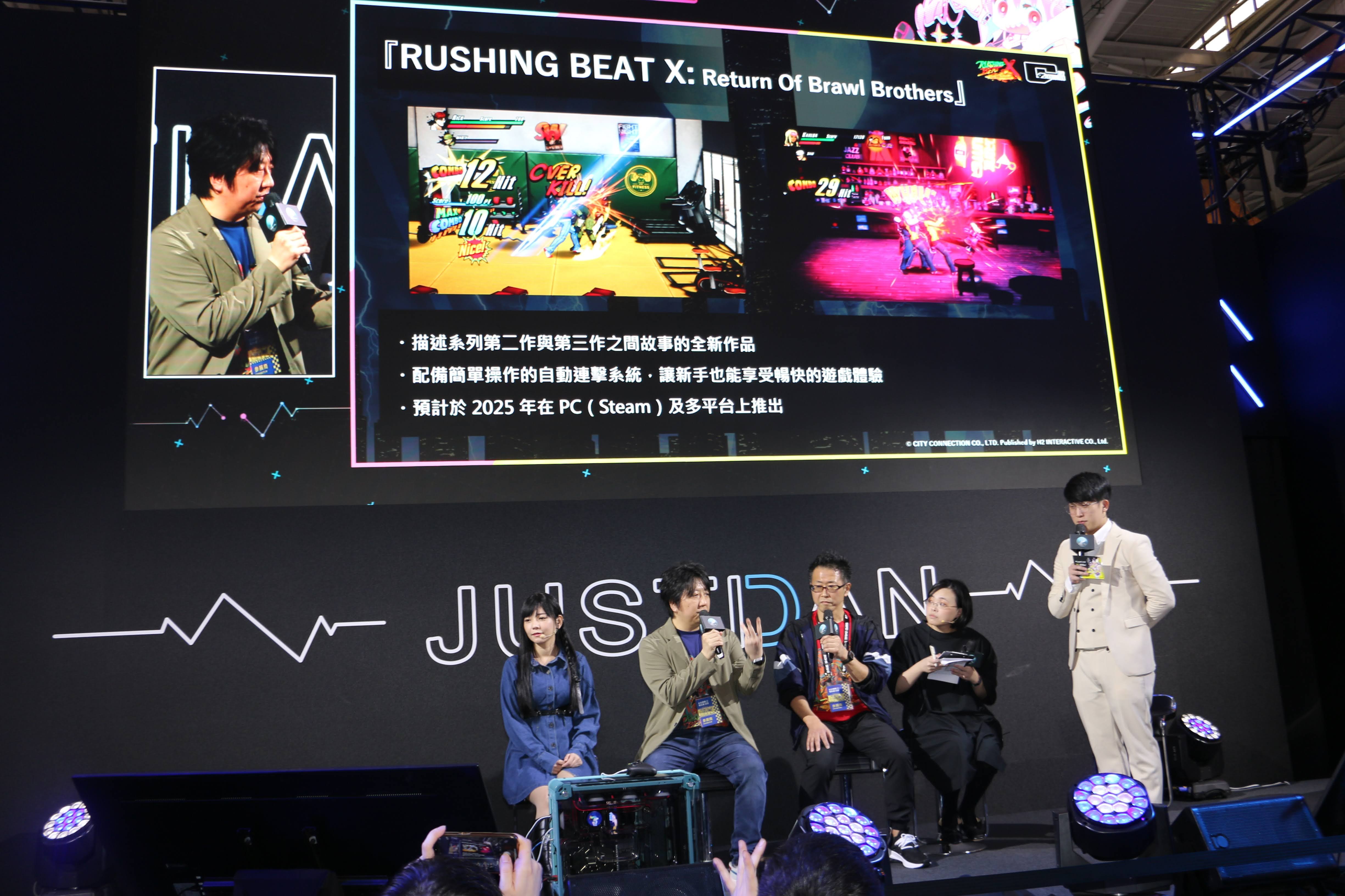 緊接著,實況主月希在台上實際體驗《RUSHING BEAT X》,並在試玩後分享了心得,她表示:「我覺得遊戲的打擊感很好。以前都覺得橫向卷軸遊戲通關會有點困難,因為不是立體的,很難去抓距離,但《RUSHING BEAT X》的攻擊範圍還滿大的,而且有一種打下去真的在扁人的感覺,很舒壓!」。