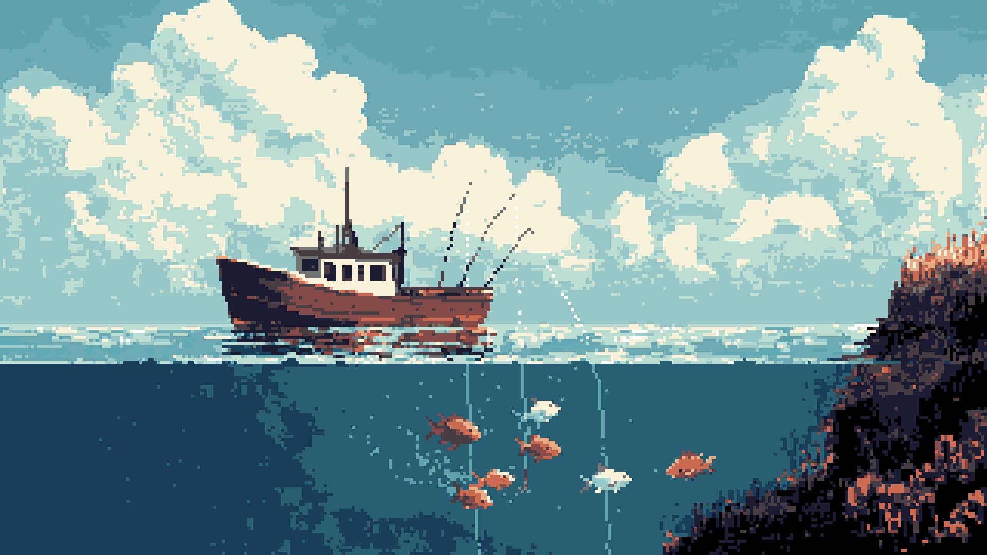 拋竿放鬆》是一款像素風格的放置型釣魚遊戲,玩家將在寧靜的湖泊、河流與海洋中探索,升級釣魚裝備並捕捉收集約 100 多種類別為常見、稀有與傳說的各式魚類。當你準備出行釣魚時,別忘了帶上忠實的小狗陪伴你冒險。