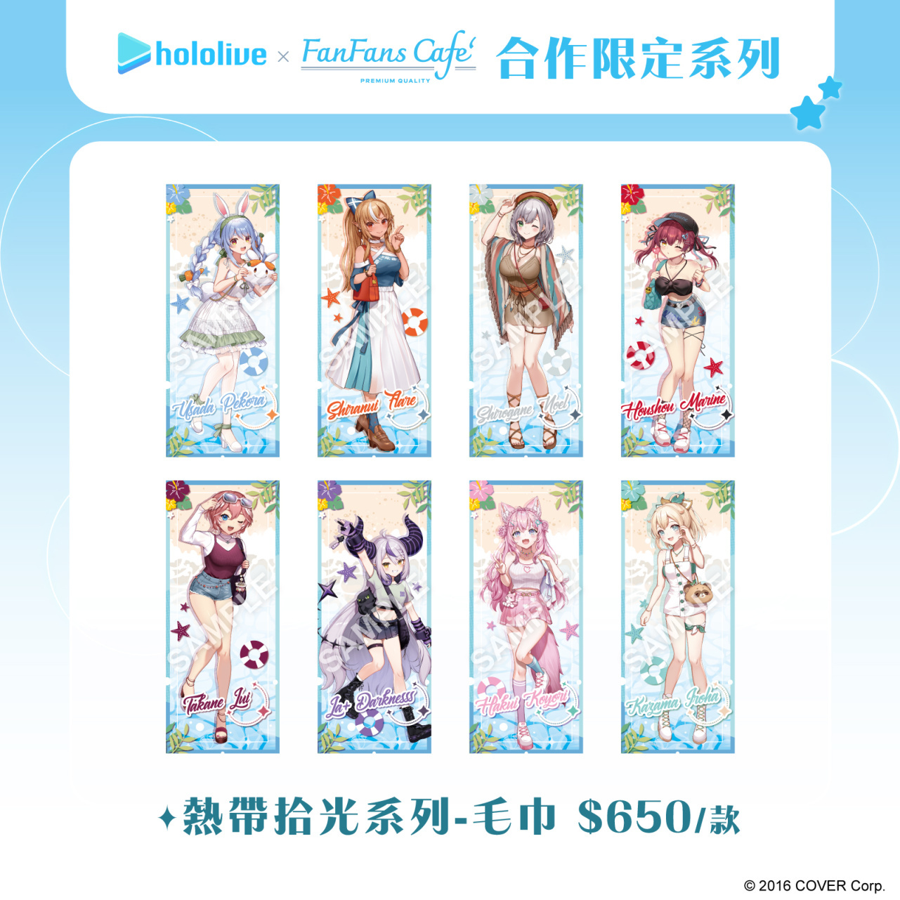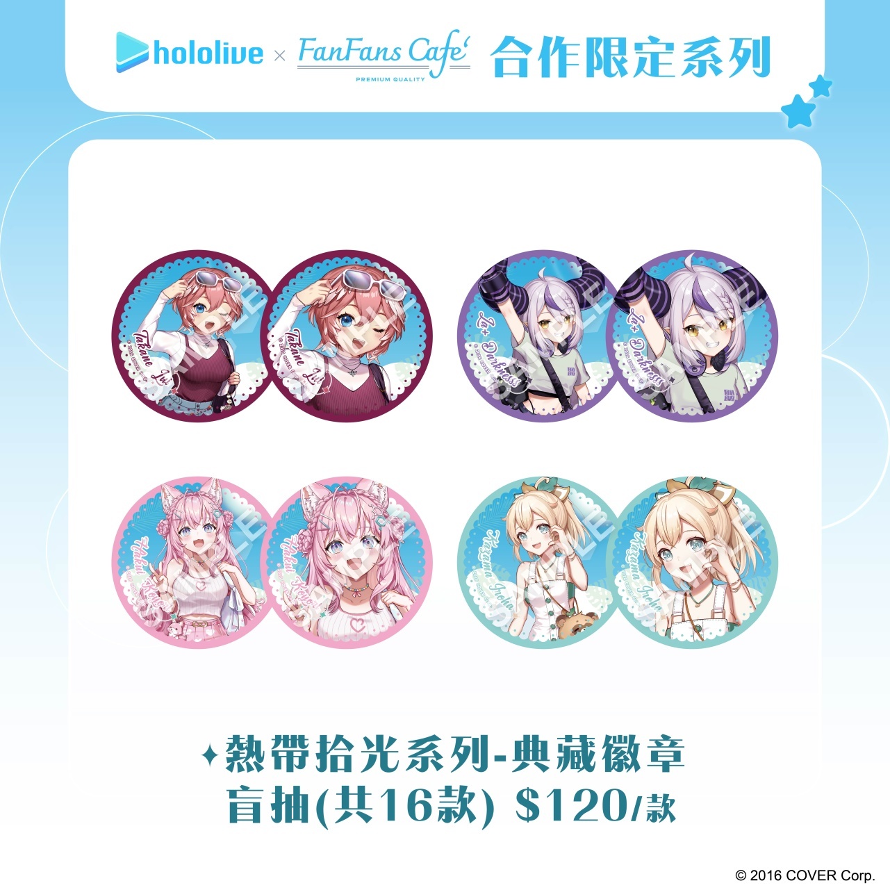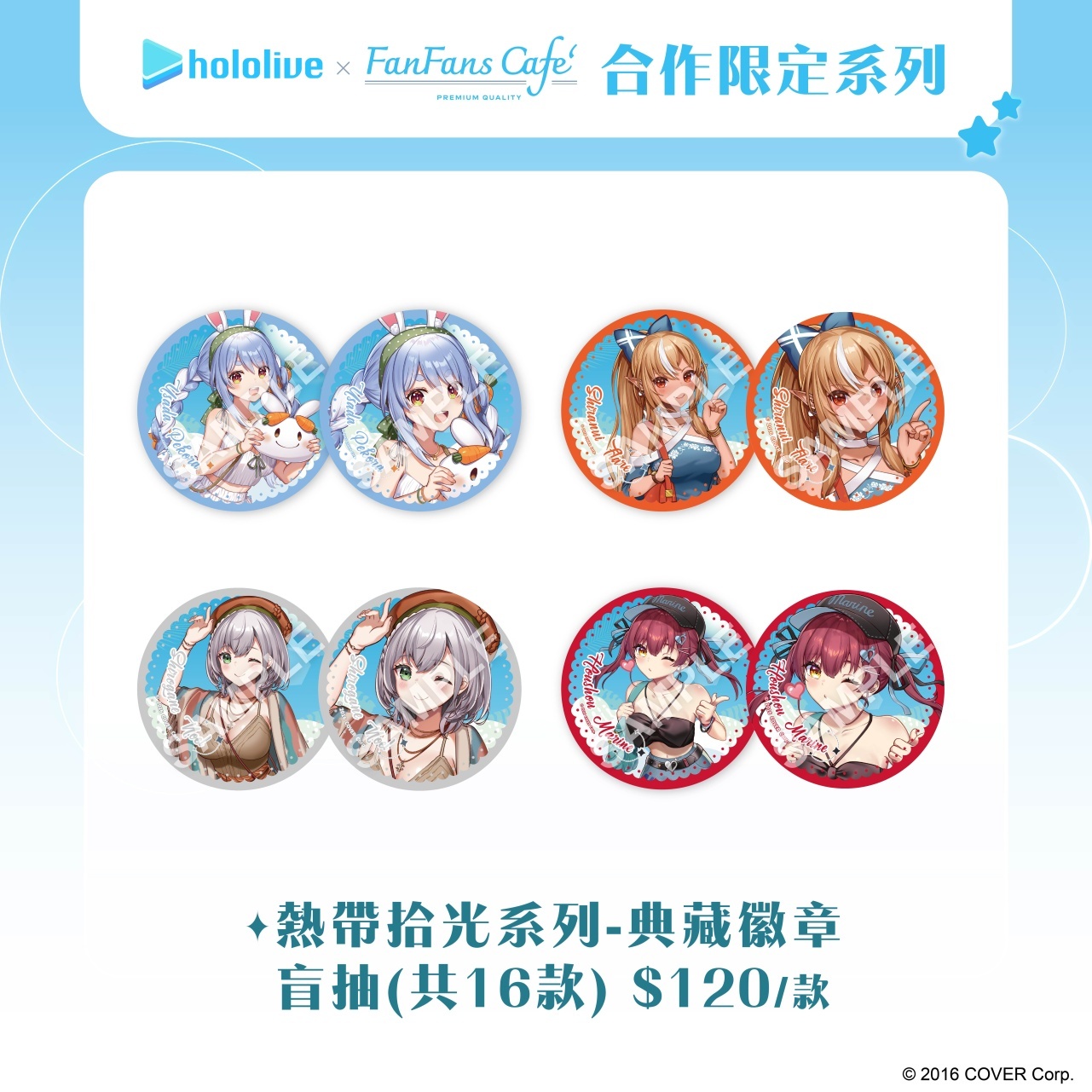 除了在泰國推出主題咖啡廳外,本次的「熱帶拾光」系列限定商品也將同步在台灣販售,其中包含壓克力立牌及小卡,壓克力立牌特別模擬攝影機的畫面,小卡更是採用拍立得造型設計,彷彿親手在海邊紀錄每個成員甜美瞬間。更有立繪毛巾、陶瓷杯墊等實用型商品,讓成員們的可愛樣貌填滿周圍。本次更推出盲抽系列壓克力吊飾以及典藏徽章,粉絲們可以自由裝飾在包包或個人隨身物品上。