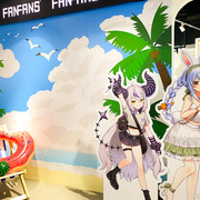 FanFans Cafe Thailand 和 hololive 中的成員:三期生兔田佩克拉、不知火芙蕾雅、白銀諾艾爾、寶鐘瑪琳,以及秘密結社 holoX 成員拉普拉斯·暗黑、鷹嶺琉依、博衣可佑理、風真伊呂波共 8 位藝人合作,並特別邀請繪師 Tanukii 繪製全新主題造型。成員們入境隨俗的換上了不同夏日服飾,成員們搭配海島風格佈景,將帶著粉絲們在享受主題餐點的同時,一起感受夏日海島的歡樂度假氛圍。