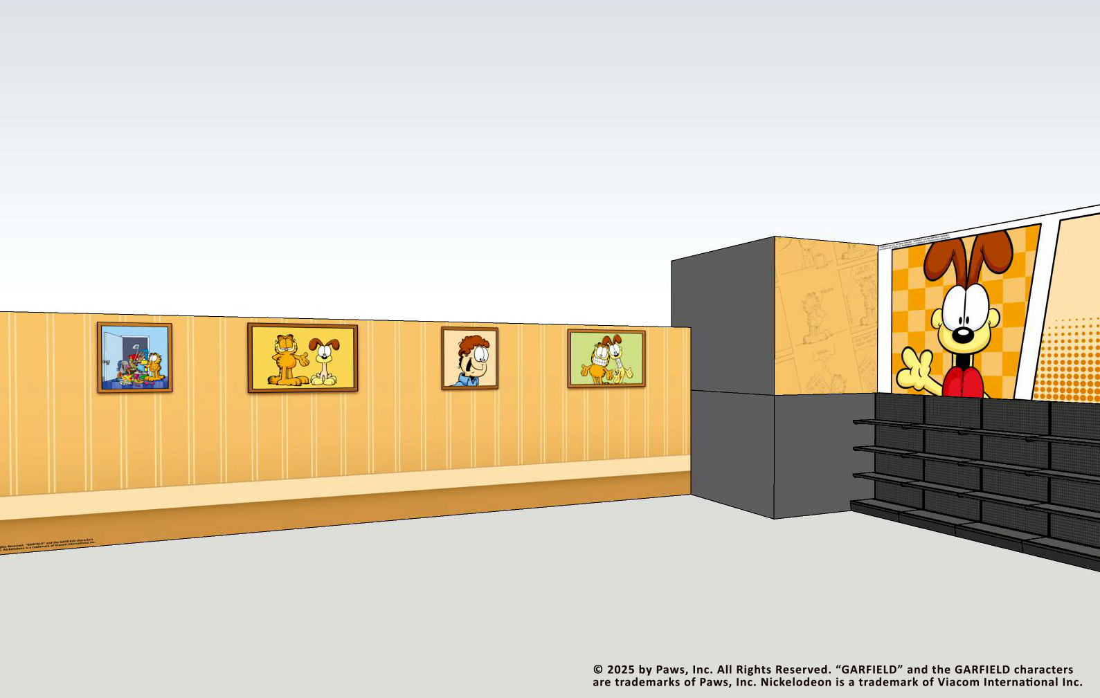 本次快閃店總共有八大打卡點,分別是進店可以看到的加菲貓與歐弟「搞怪二人組」與睡眼惺忪的加菲貓在窗邊「歡迎來我家」,還有本次加菲貓快閃店「主視覺」、有著加菲貓、歐弟、老姜、尼莫及阿玲巨大立牌的「加菲貓與好友們」拍照區。接著像是打造加菲貓房間的「一起賴床吧」、「客廳耍廢我最會」以及「加菲貓漫畫牆」都將於本次活動登場。