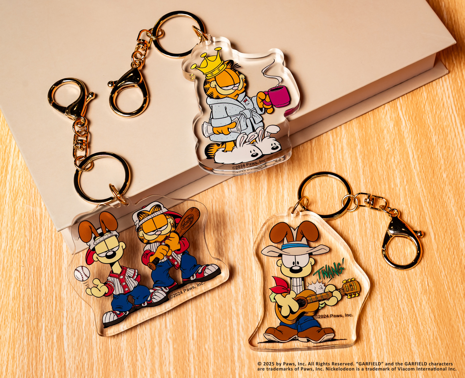 週邊商品的部分,本次快閃店則是準備了有著竊笑、吐舌及賣萌等超過六種加菲貓表情包及可愛符號的「行李箱貼紙」還有像是「漁夫帽」、「飲料小提袋」、「壓克力鑰匙圈」、「寵物頭套」以及「大零錢包」、「大學 T」等相關實用商品。