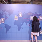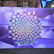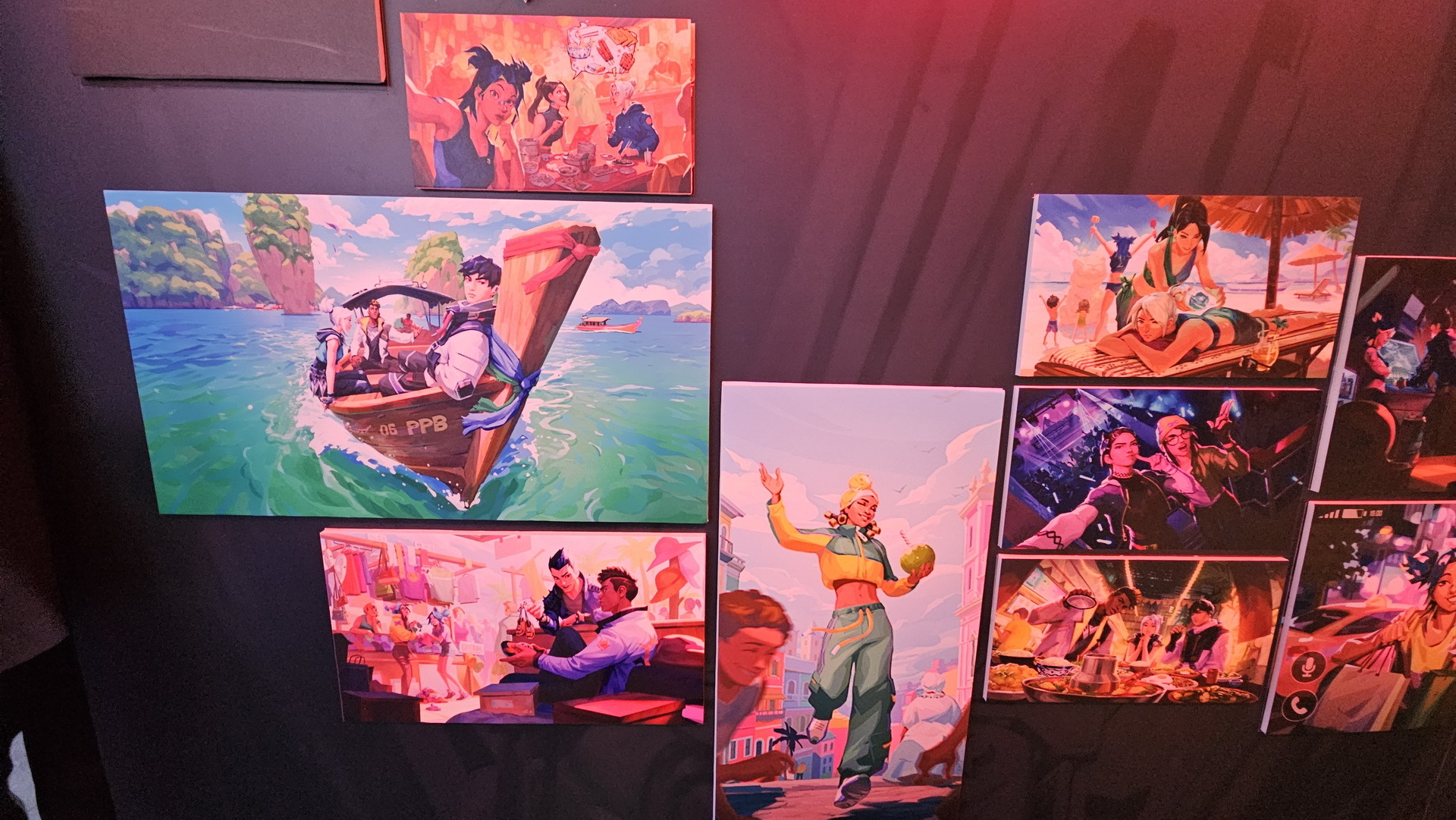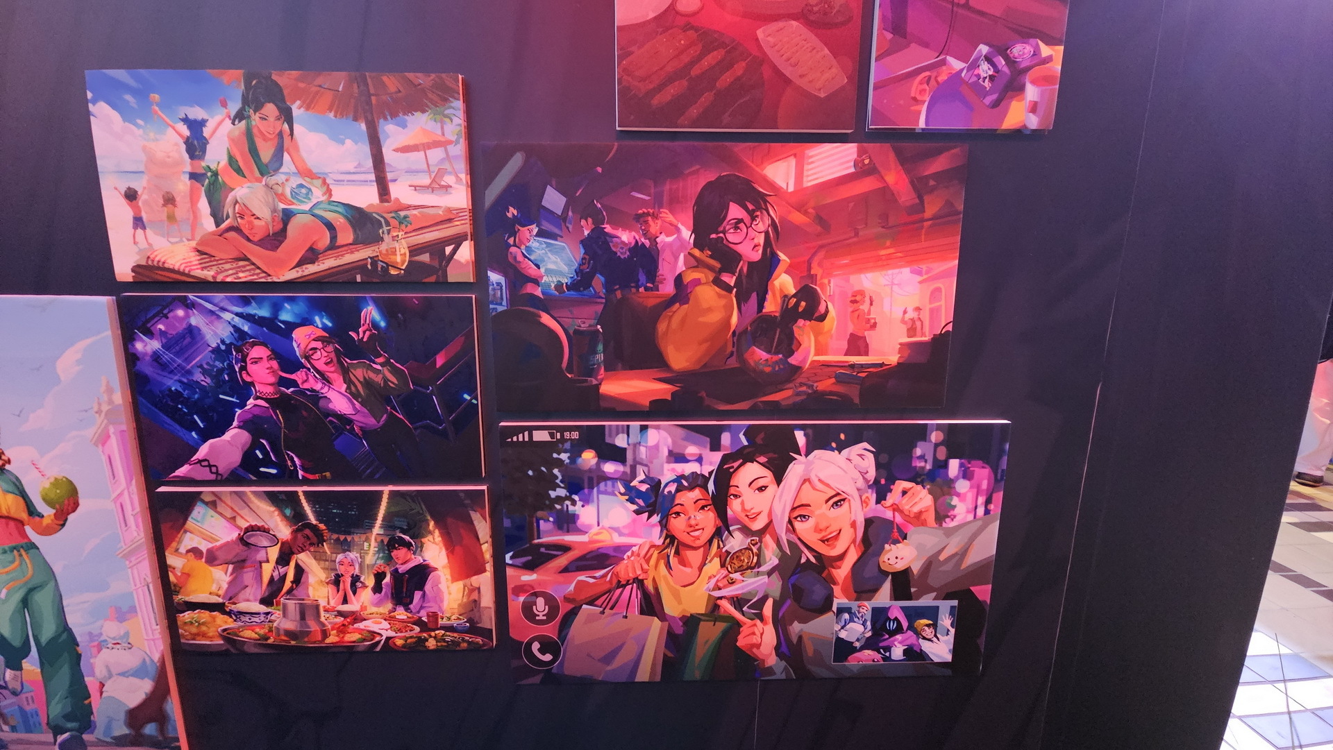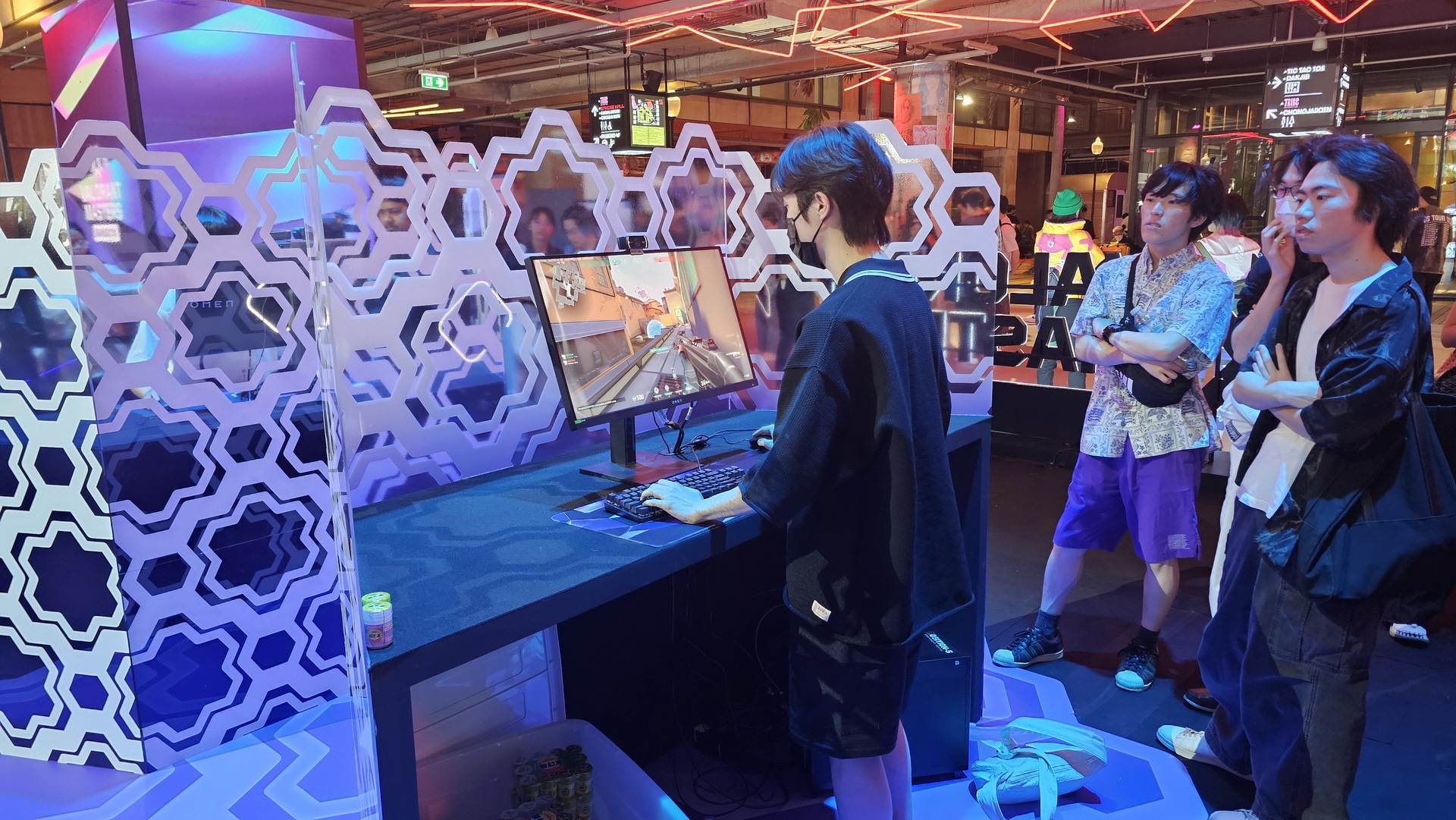 相較於 1 樓輕鬆的吃喝玩樂氛圍,5 樓則以紫色為主色展現了完全不同的風格,讓玩家可以更進一步感覺比賽的刺激。這裡還設置了一面大牆,玩家可以在上面簽名或者寫上想要對隊伍說的話。