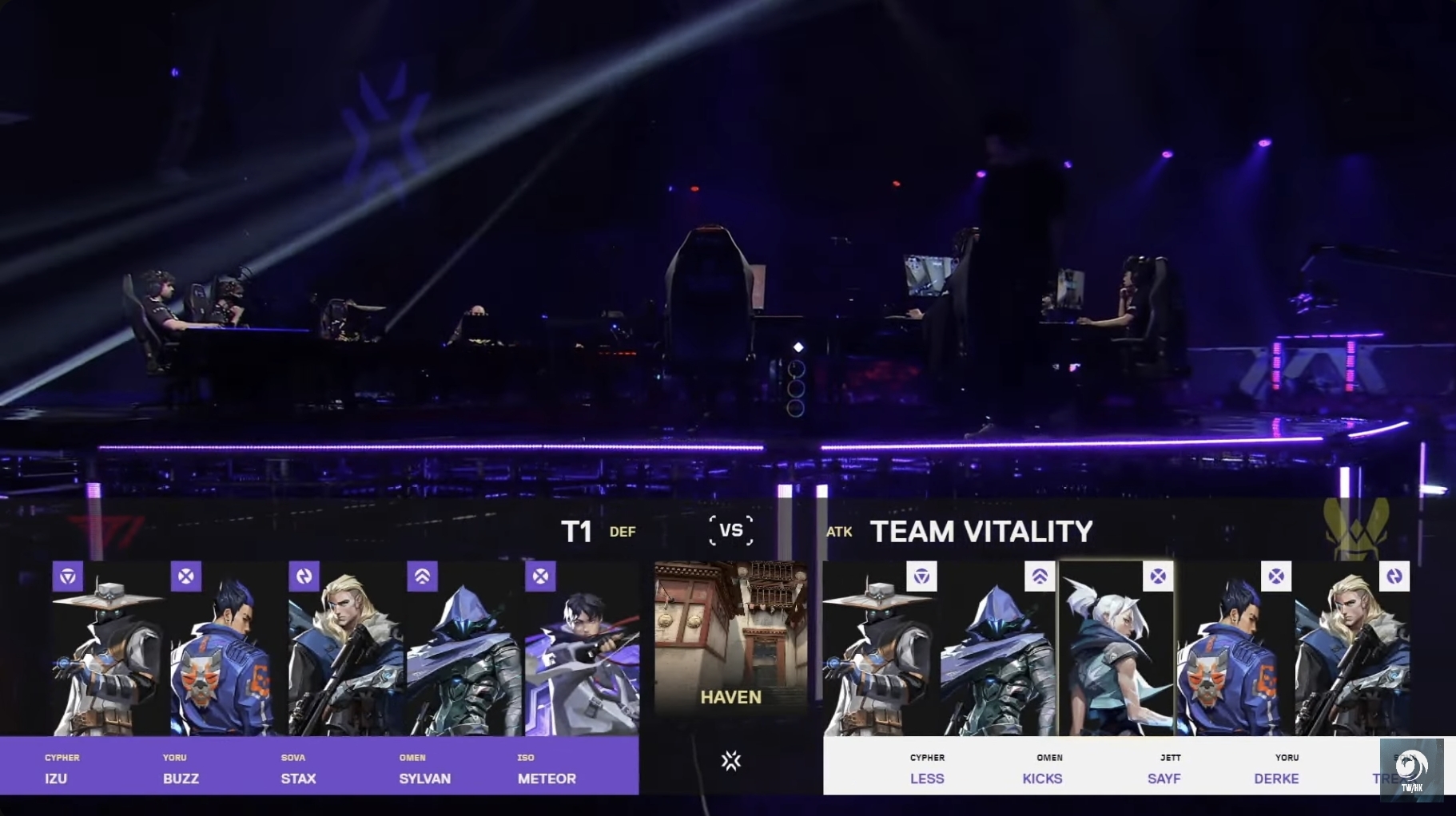 今日第二場比賽為敗部組賽事由 T1 對上 VIT,勝者將於明日再戰 EDG,敗者則將結束這次的賽事旅程。第一張地圖在「蓮華古城」交手,T1 在開局便給 VIT 很大的壓力,並在 14 局時順利收下十分,T1 以 10:4 領先。暫停過後,VIT 找回了自己的節奏,逐漸縮短雙方比分差距,更將比數追到了 10:10。戰況激烈,雙方陷入拉扯,比分來到 12:12,VIT 更勝一籌最終以 14:12 拿下第一場勝利。