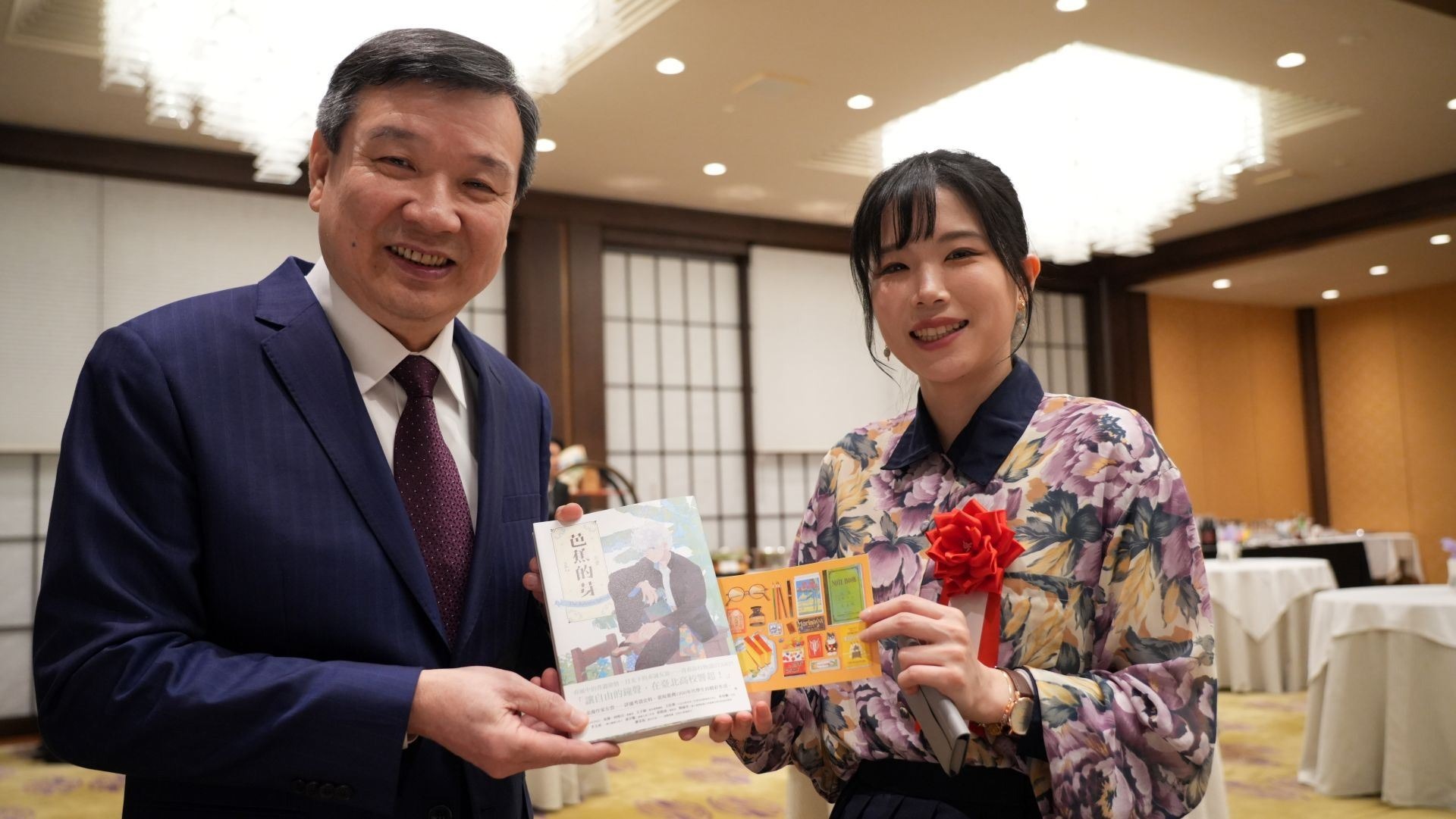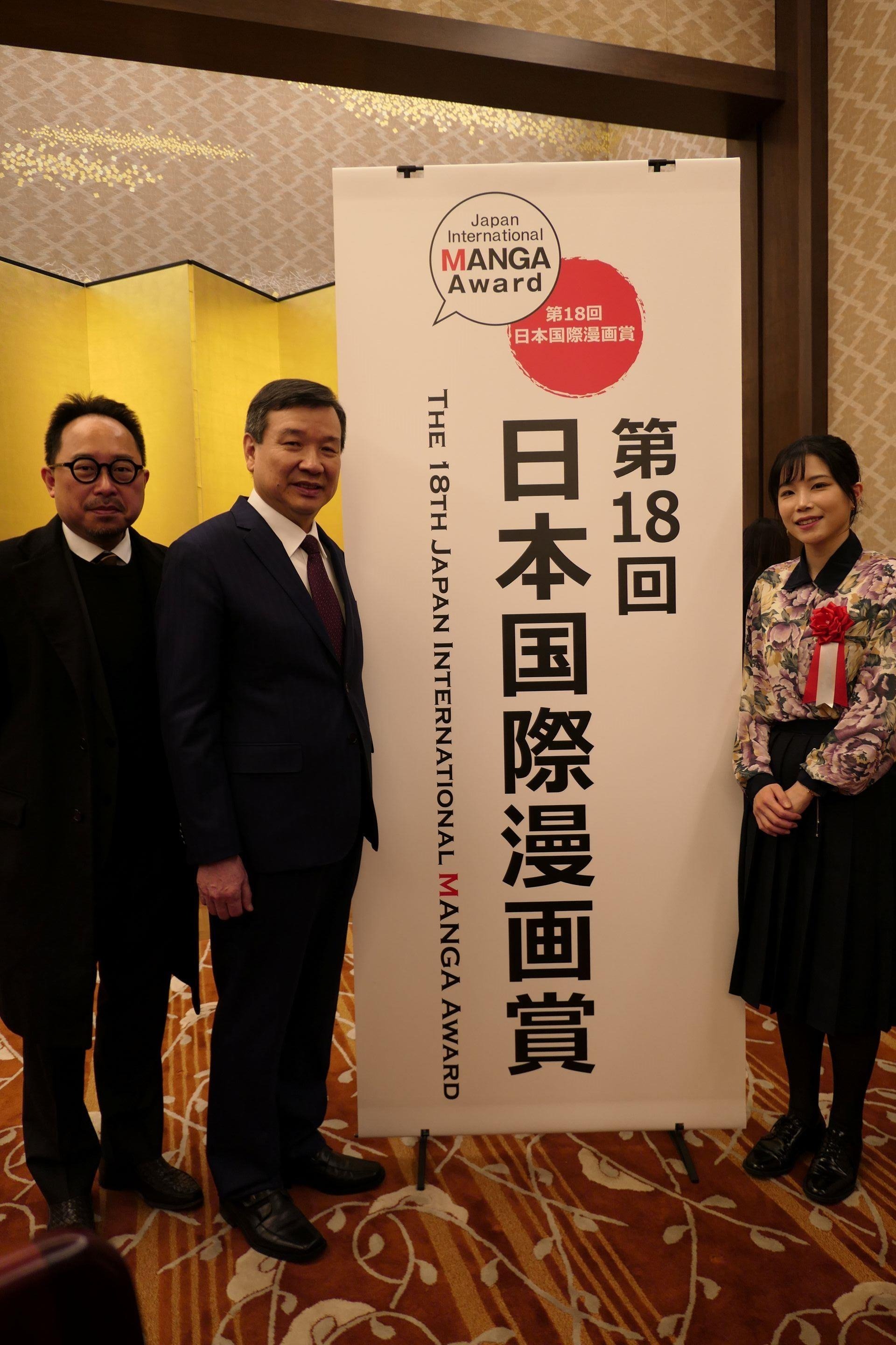 對於特別前來典禮現場祝賀的駐日代表李逸洋,左萱也特別致贈附有親筆簽名的得獎作品。李逸洋表示,日本國際漫畫獎自創辦以來,臺灣漫畫家至今已累積 2 金 9 銀 21 銅的佳績,本屆參賽作品來自 95 個國家,共 716 件,創下歷年新高,競爭激烈,能夠獲獎很不容易,未來駐日代表處與臺灣文化中心將持續推動臺灣漫畫在日本的發展,促進文化交流,讓更多人欣賞臺漫的魅力。