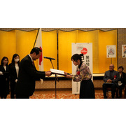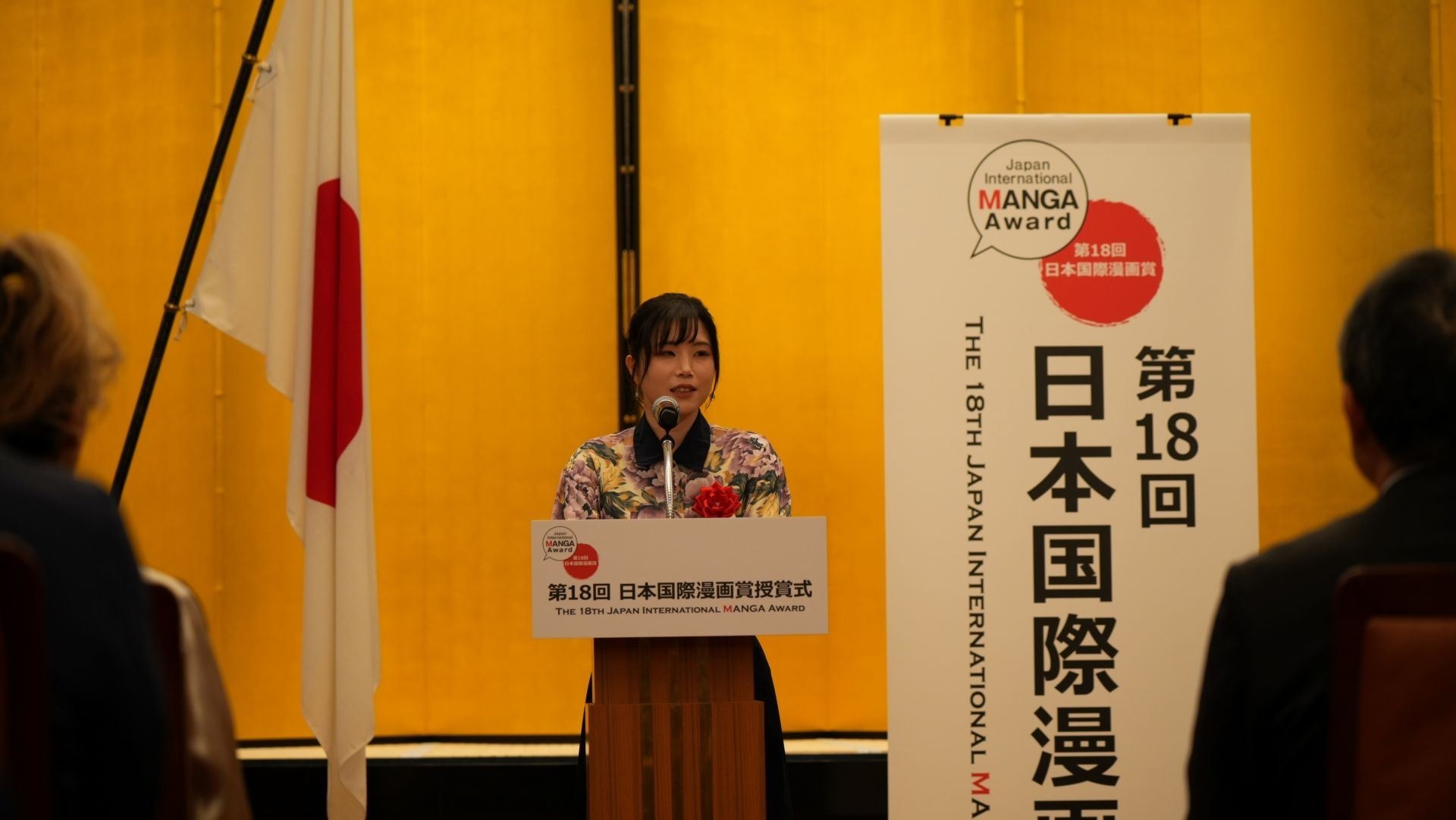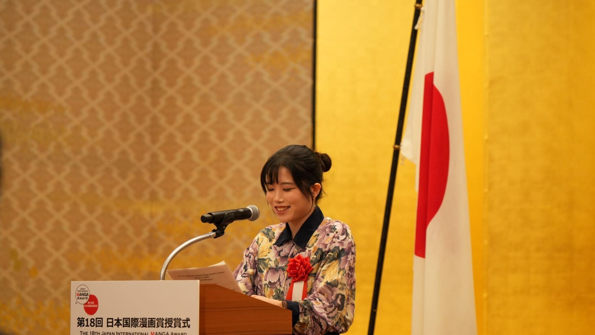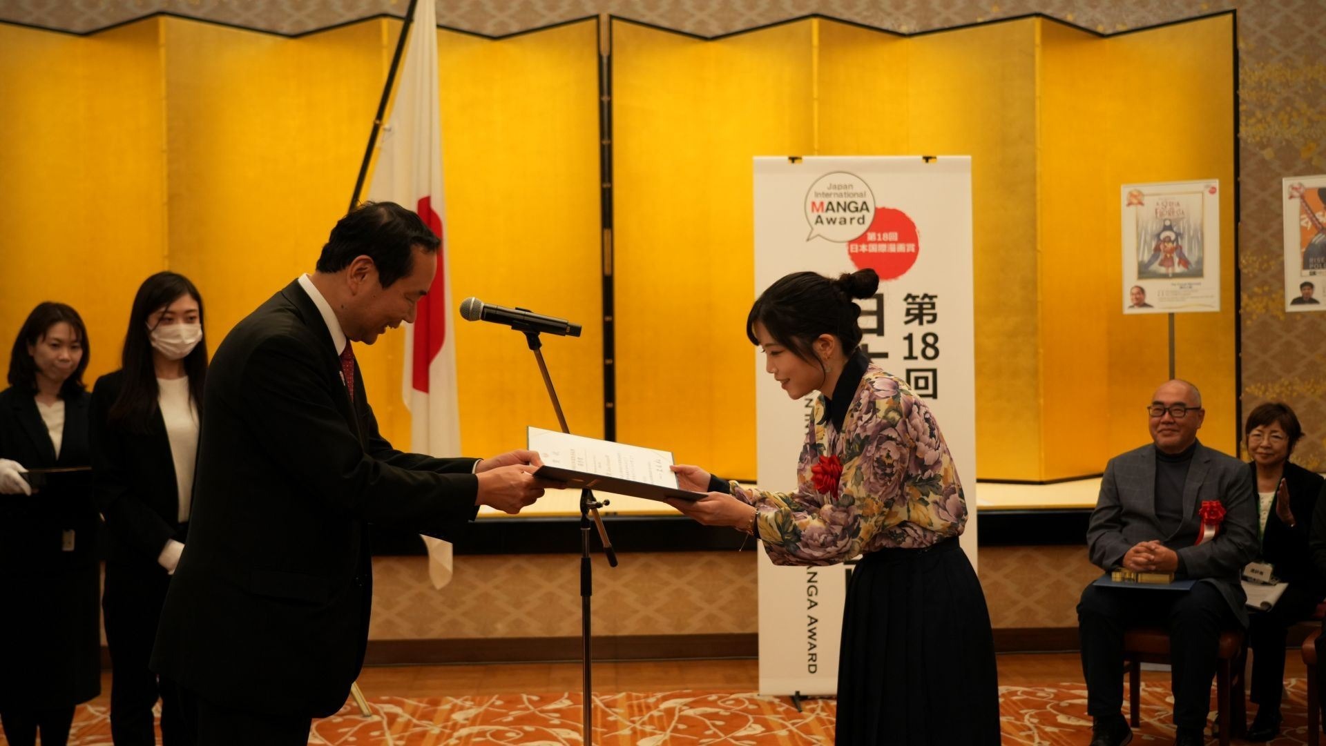 頒獎典禮由外務省副大臣藤井比早之及審查委員長、知名漫畫家里中滿智子頒發獎狀及獎座。左萱在發表得獎感言時,特別用日文介紹自己來自臺灣,在談到得獎作品及感想時表示,《