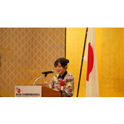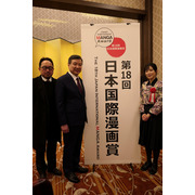 漫畫家左萱(左1)與本次得獎者、外務省副大臣藤井比早之(左3)、審查委員長里中滿智子(右3)合影