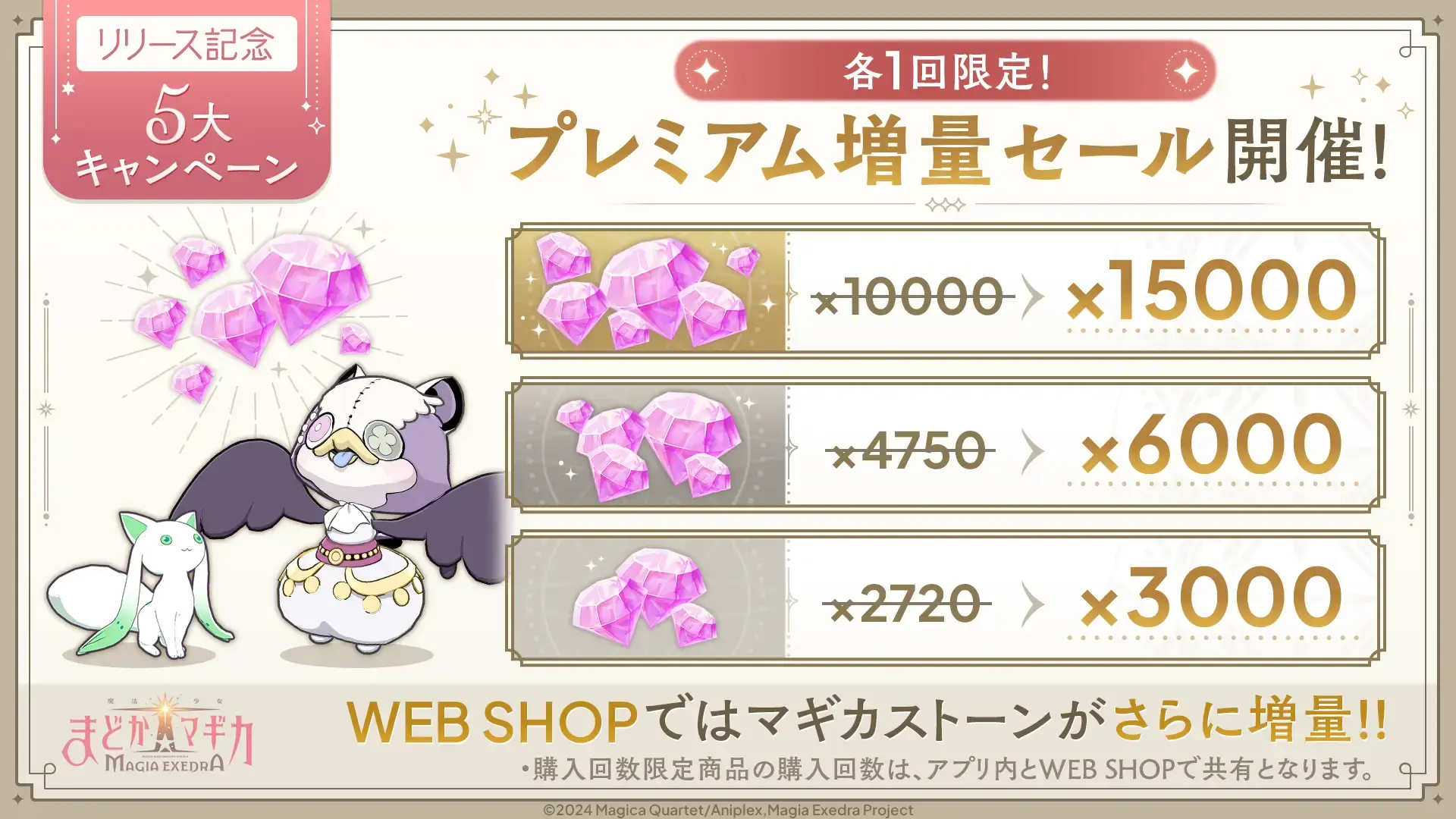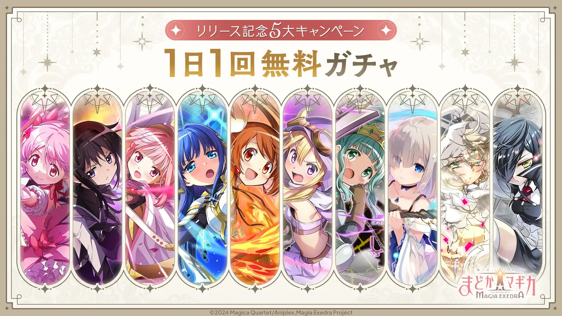官方指出,上市紀念 5 大活動也隨著遊戲推出同步登場,包含像是上市登入獎勵、每日 1 次免費抽卡活動、★5 記憶確定付費限定抽卡、販售上市紀念育成禮包等。此外,鹿目圓 & 曉美焰限定 PICKUP 抽卡也將登場,並於遊戲內推出原創 IF 故事活動 「焦らずゆっくり未来へ~魔法少女に夢を見て~」,詳情可參考官方公告。