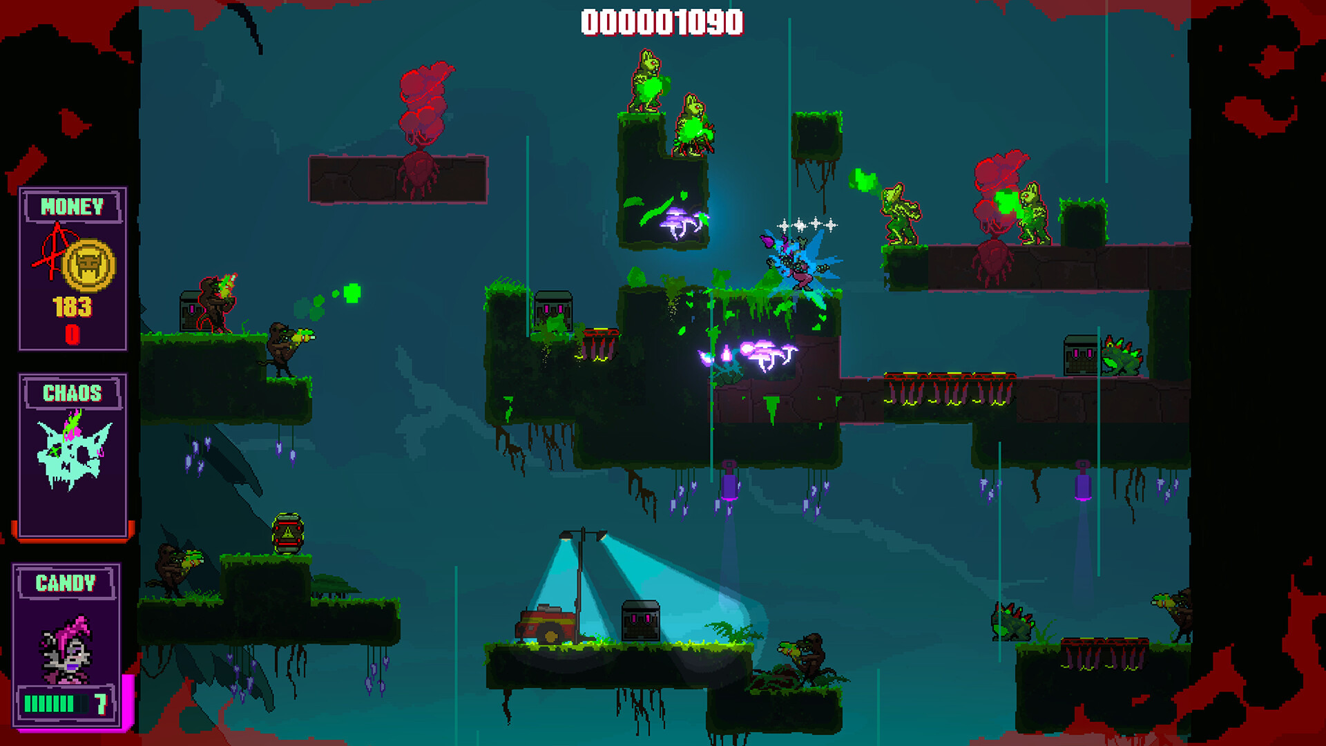 遊戲中共有五個關卡區域,前四個可讓玩家自由選擇挑戰順序,玩家還可以透過卡牌收集系統為貓咪賦予變異能力。另外,官方強調遊戲復古龐克與重金屬配樂風格,將為玩家呈現一場腎上腺素飆升的狂野冒險之旅。