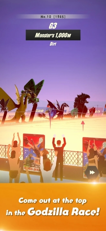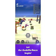 《奔跑哥吉拉》是一款放置遊戲,玩家將在一座星球上的小村莊培育哥吉拉,與星球上的其他怪獸賽跑。為了讓哥吉拉變強需要村民們獻上祈禱,村中的村民越多祈禱效果越好,而增加村民人數需要建造鑽石礦場生產鑽石,吸引外人來到村莊。另外,讓哥吉拉贏下比賽可以減少空氣汙染,也能增加村落中蘋果的產量,玩家能將蘋果贈與即將離開的村民,增加他留在村莊的意願。