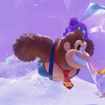 說起《咚奇剛》系列,3D 造型的咚奇剛雖然不新鮮,但過去的《咚奇剛》主要是以 3D 角色來跑 2D 橫向動作玩法,這次則是採用 3D 開放式地圖融合探索要素、真正意義上的「3D 咚奇剛」。這種進化路線讓人聯想到「3D 瑪利歐」,的確筆者個人摸到遊戲的第一印象也是「這難道不是《咚奇剛 奧德賽》嗎⋯⋯?」