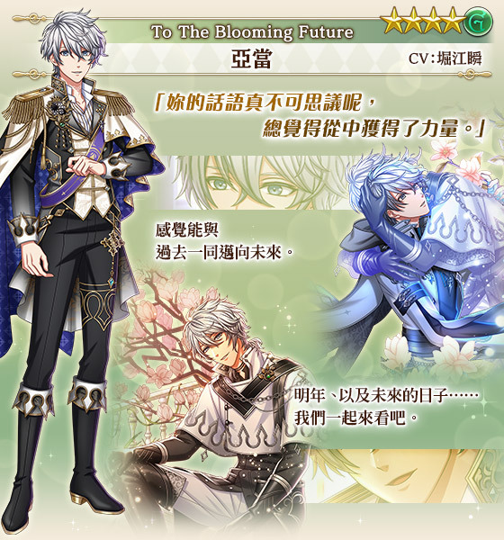 《夢 100》全新活動「To The Blooming Future」正式開放,即日起至 2025 年 4 月 21 日進行活動任務即可獲得 SP 王子與豪華獎勵!另可於抽池內獲得 SP 王子,另開啟 STEP 召喚抽池,達到第三階必可遇見活動 Ver. 王子;本次召喚附贈露娜寶石,該寶石達指定數量可至交換所直接兌換活動 Ver. 王子殿下。