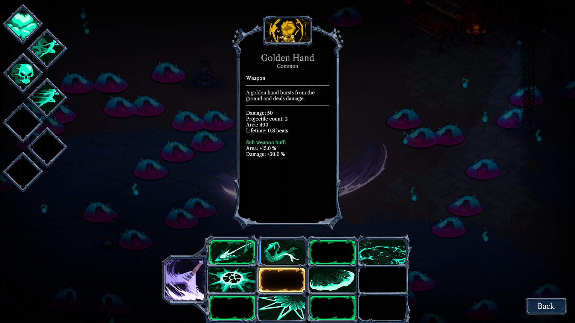 遊戲提供多樣化的武器與技能,並且不同的排列組合,所造成的效果也大不相同,玩家可以自由搭配 12 格技能欄位,組成個人化的戰鬥風格;在視覺風格上,《搖滾地獄》採用手繪畫風,怪物角色結合樂器元素,如身體長得像吉他箱怪物,或是喇叭蝙蝠等,再搭配上搖滾風格配樂,使遊戲氛圍就像是在地獄裡開一場搖滾演唱會。