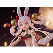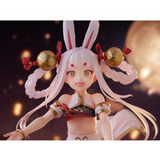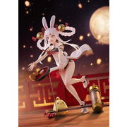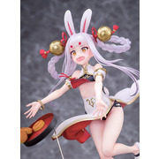 碧藍航線》,重櫻陣營的「島風」化身為 1/7 比例模型。 以「慌慌張張的玉兔」為主視覺,在月光下月餅掉落時,將慌亂的島風,可愛的瞬間製成模型。 以旗袍為基底的服裝大膽改造,搶眼的銀色髮辮上搭配金色大鈴鐺,重現出輕盈且充滿躍動感的造型。 而島風腳邊試著拿起巨大杵子的饅頭,同時為故事性增添了生動有趣的要素。 此外,配件附有「笑臉」,敬請以喜好的風格鑑賞。