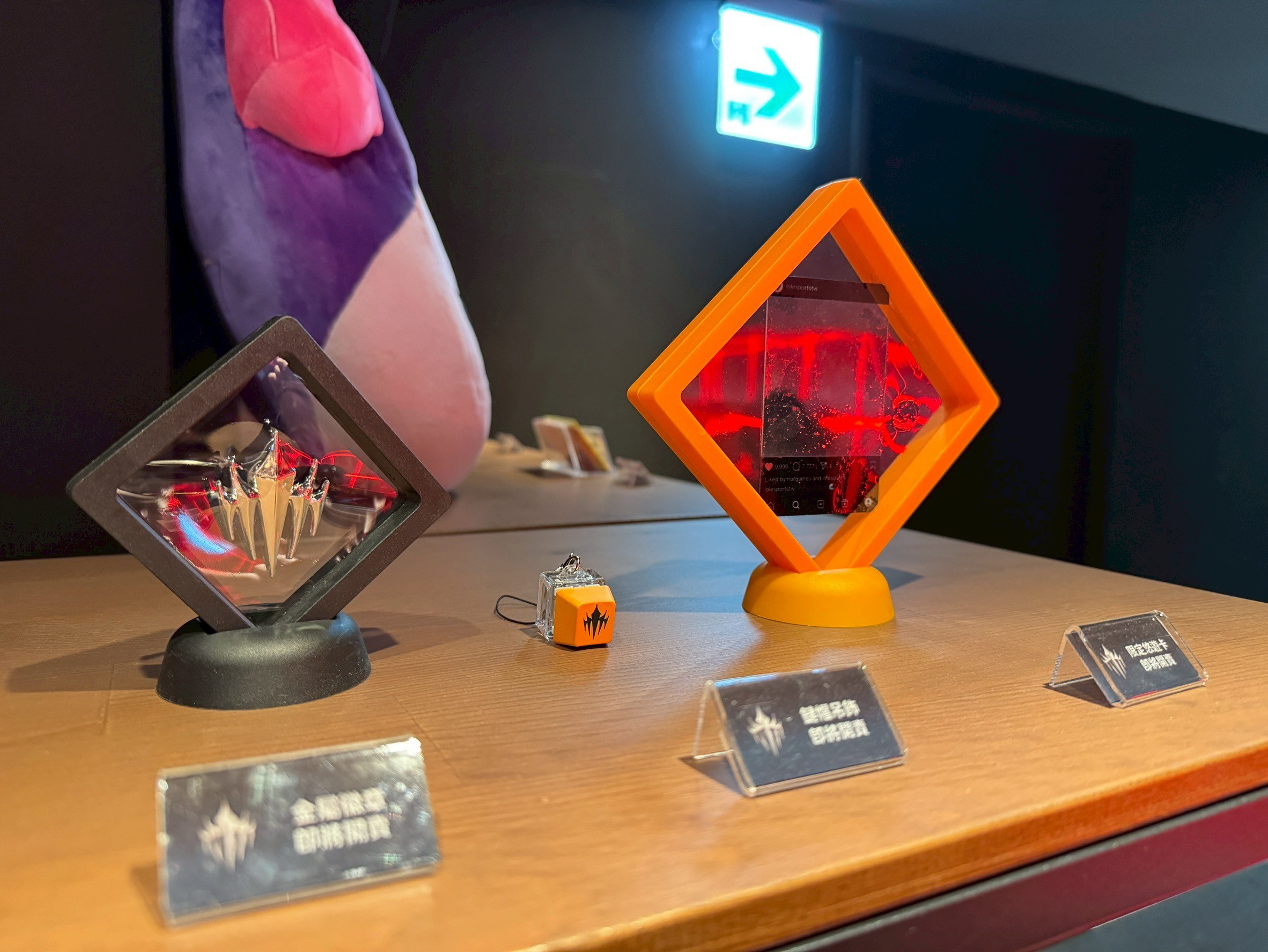 除了四樓外,從 Riot 周邊商品展示區旁樓梯上去的五樓,這裡只有工作人員能進入、不對外開放。五樓可以抵達觀眾席後方的主播賽評播報區,背景就是整個 LCP 比賽舞台,播報區旁是控台區(前台區),此區域負責監控所有廠內展示要素、燈光控制、同步視覺整合,像是在即時選角階段要即時將對應的英雄插圖呈現在 LED 螢幕上等,還有音響的相關控制。