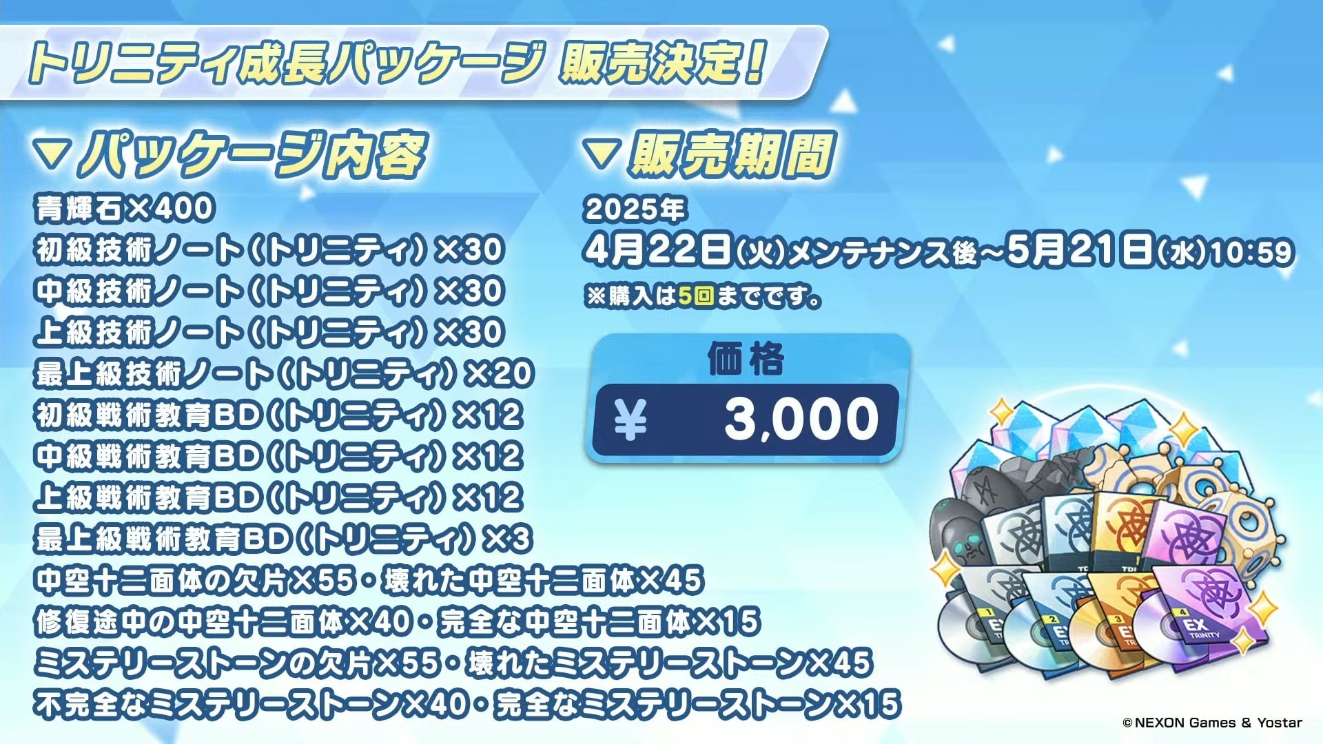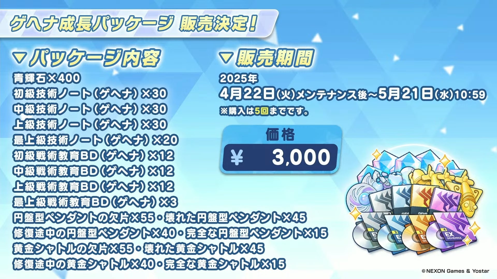 以★3 學生招募禮包為首的一系列禮包將於 4 月 22 日(二)維護後開始販售。