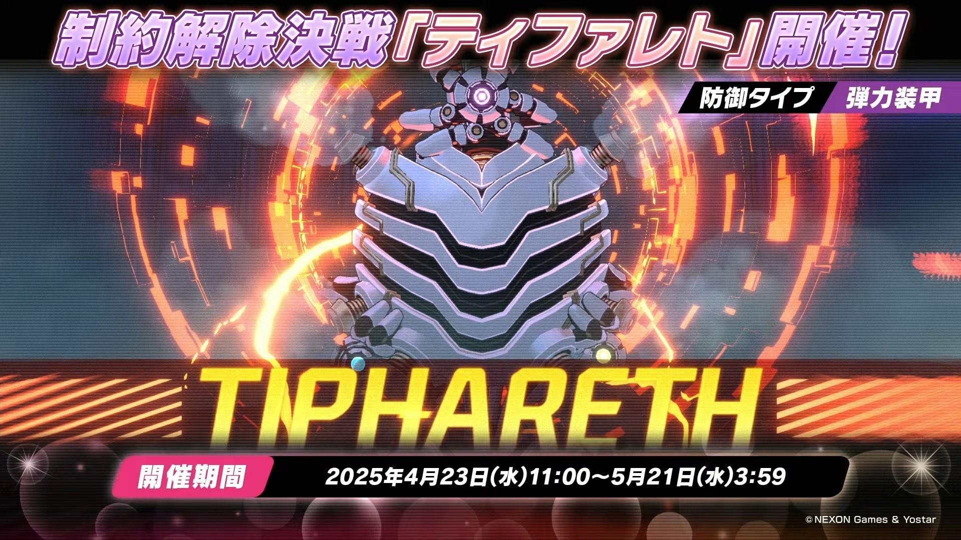 在未來更新方面,首先,制約解除決戰「TIPHARETH」將於 4 月 23 日(三)舉行至 5 月 21 日(三);戰術大賽的新賽季、以及 Ex.「十字神名」篇第 2 章「火之劍」Part3 都將於 5 月 7 日(三)維護後開跑。
