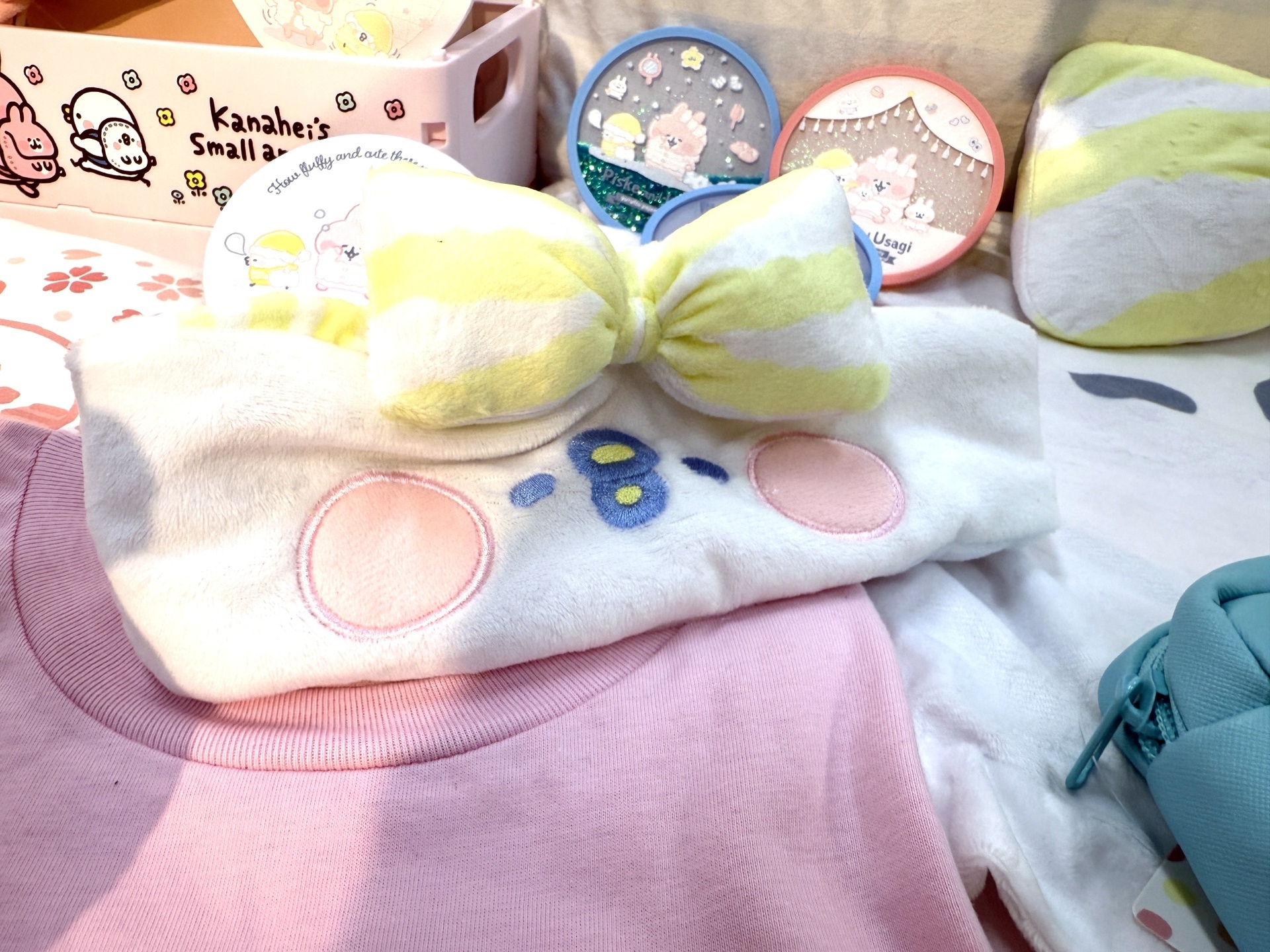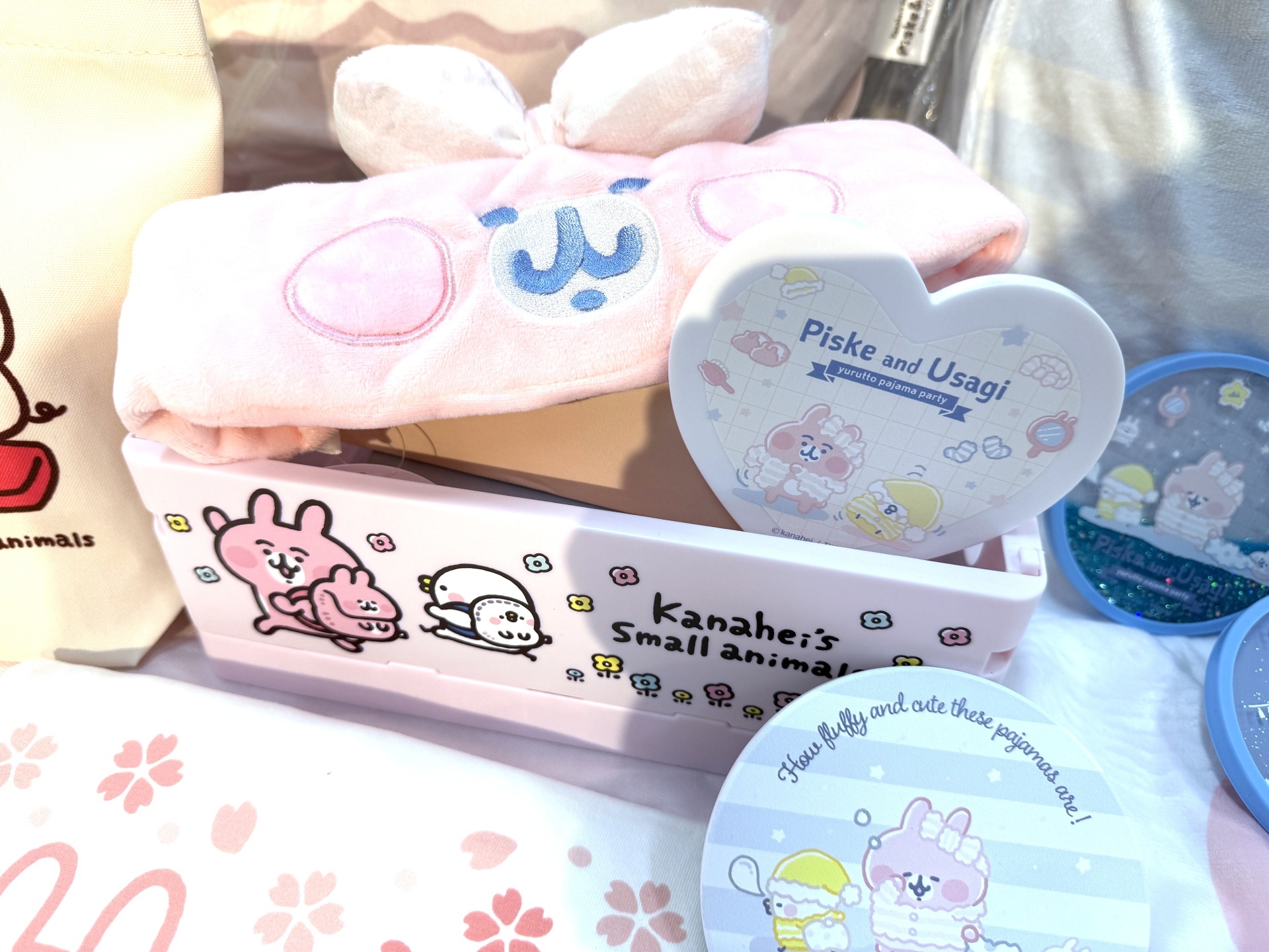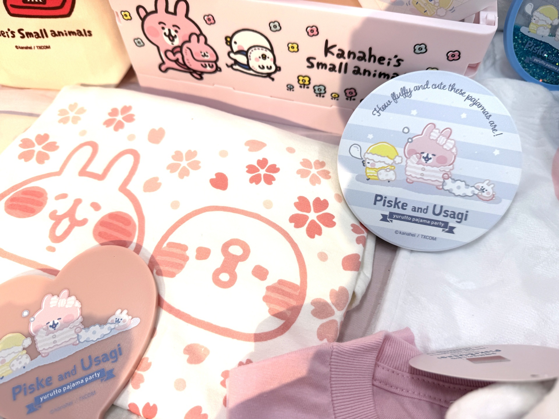 週邊商品這邊,除了過去推出過的許多《卡娜赫拉的小動物》精選週邊外,本次的「卡娜赫拉的小動物 睡衣派對」快閃店將會帶來抱枕、小滑鼠墊、梳子、化妝包、飲料提袋、梳鏡子以及抽拉鑰匙圈等多款全新週邊登場。