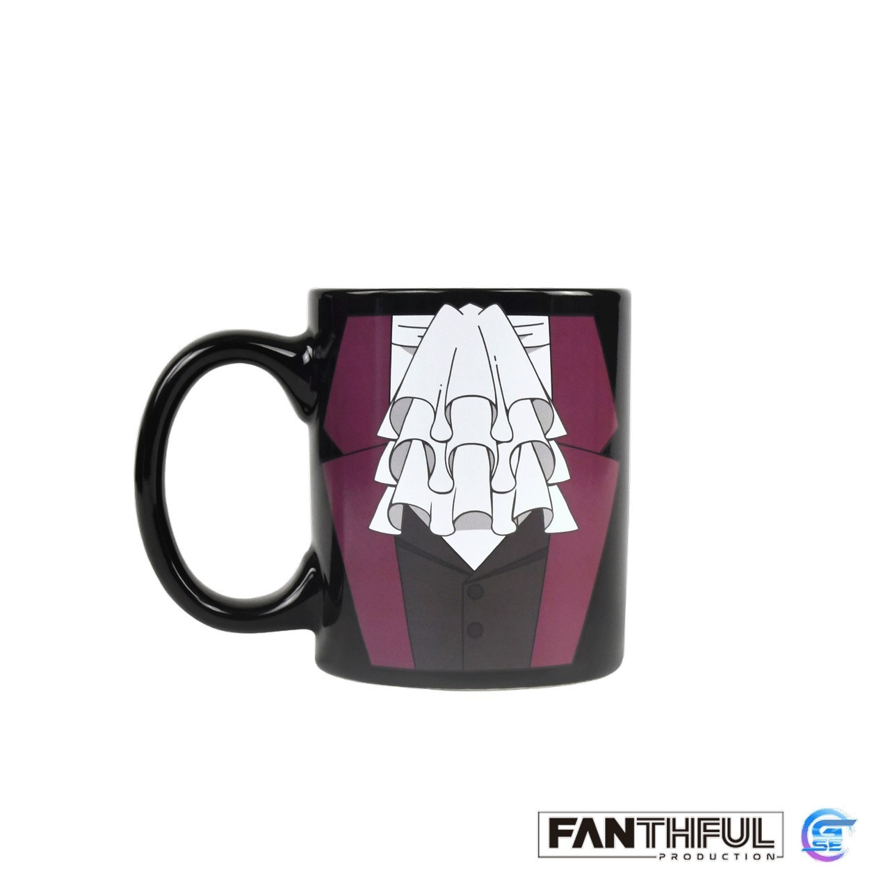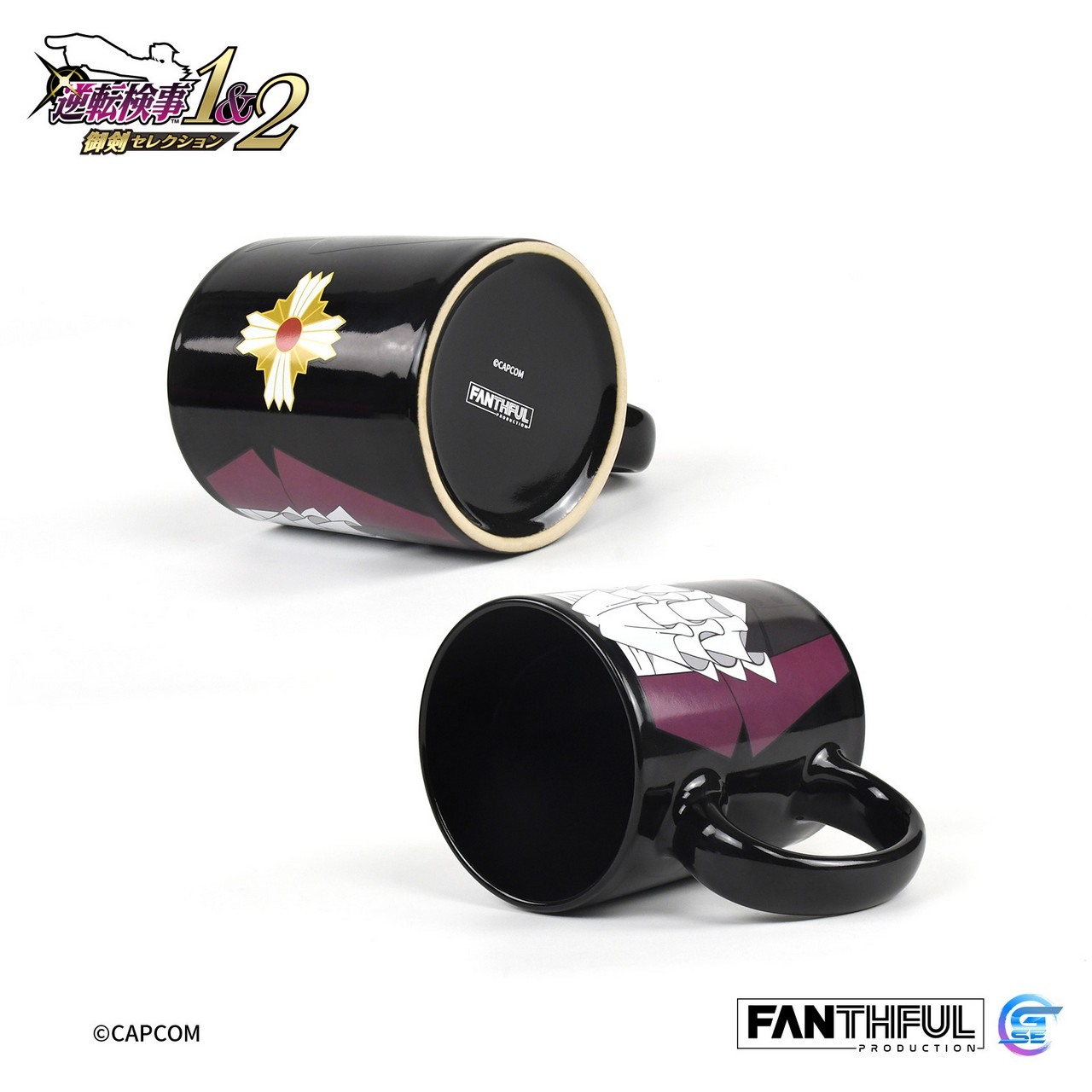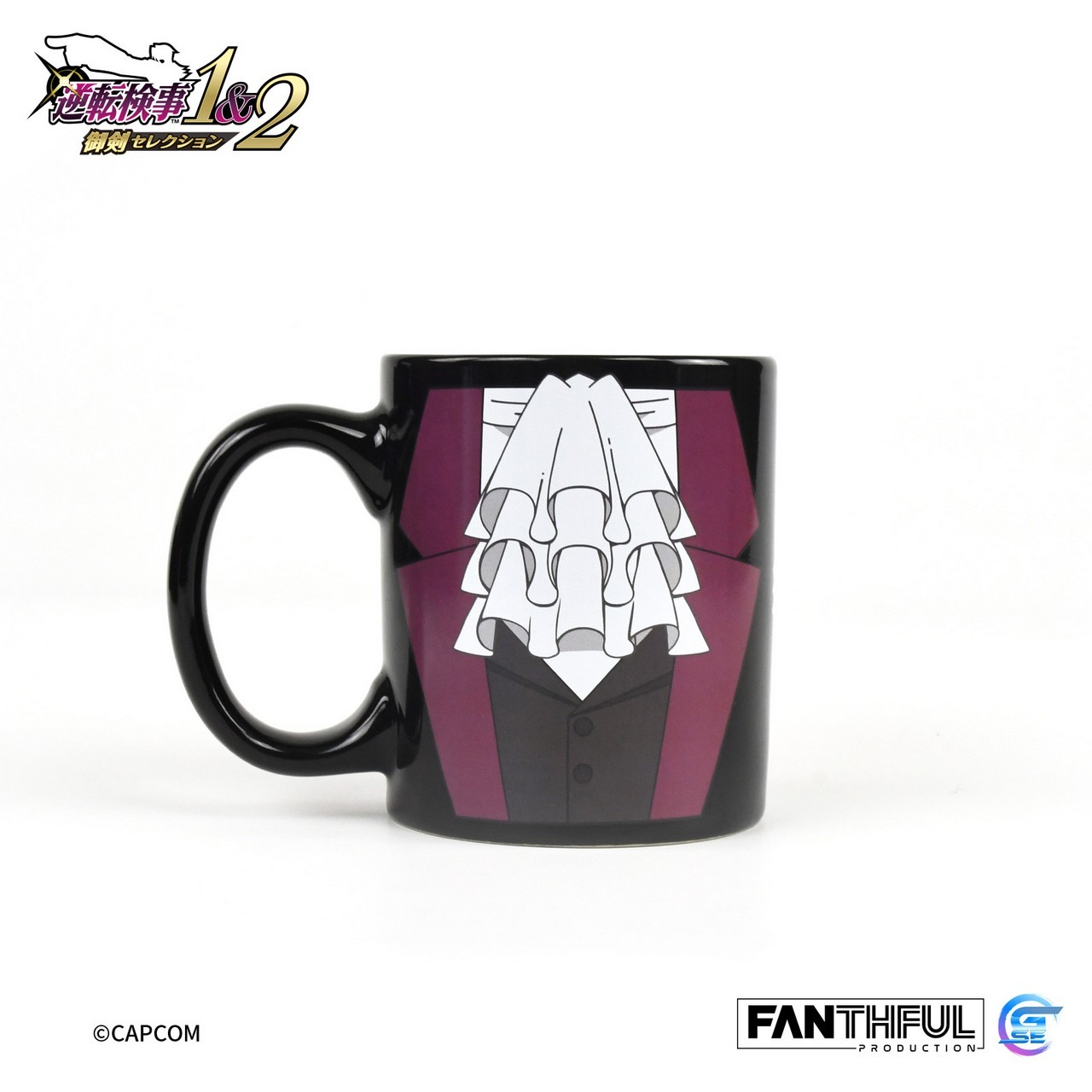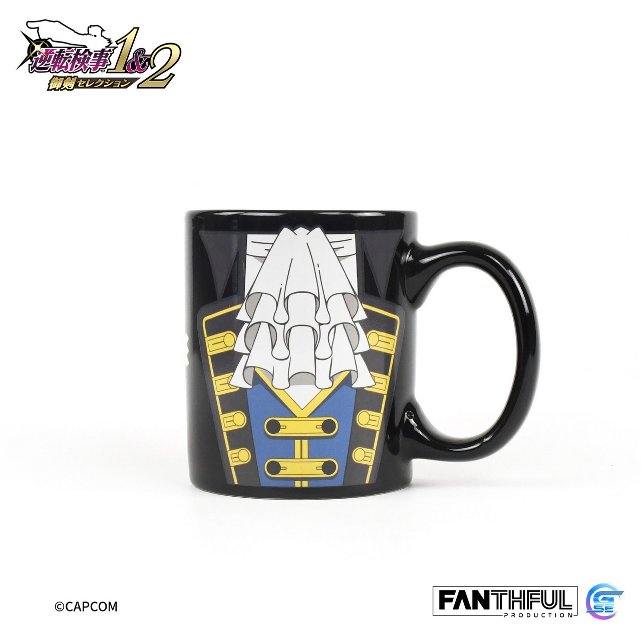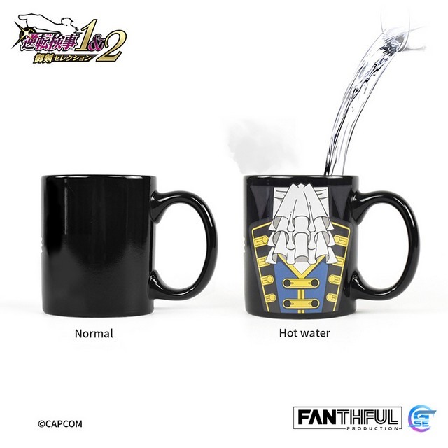 一面展示了御劍怜侍當前的代表性服飾,另一面在常溫下是黑色杯身,當倒入熱水時,杯身則會顯現出御劍七年前的服裝圖案。御劍君督促大家多喝熱水,實在趣味十足!