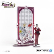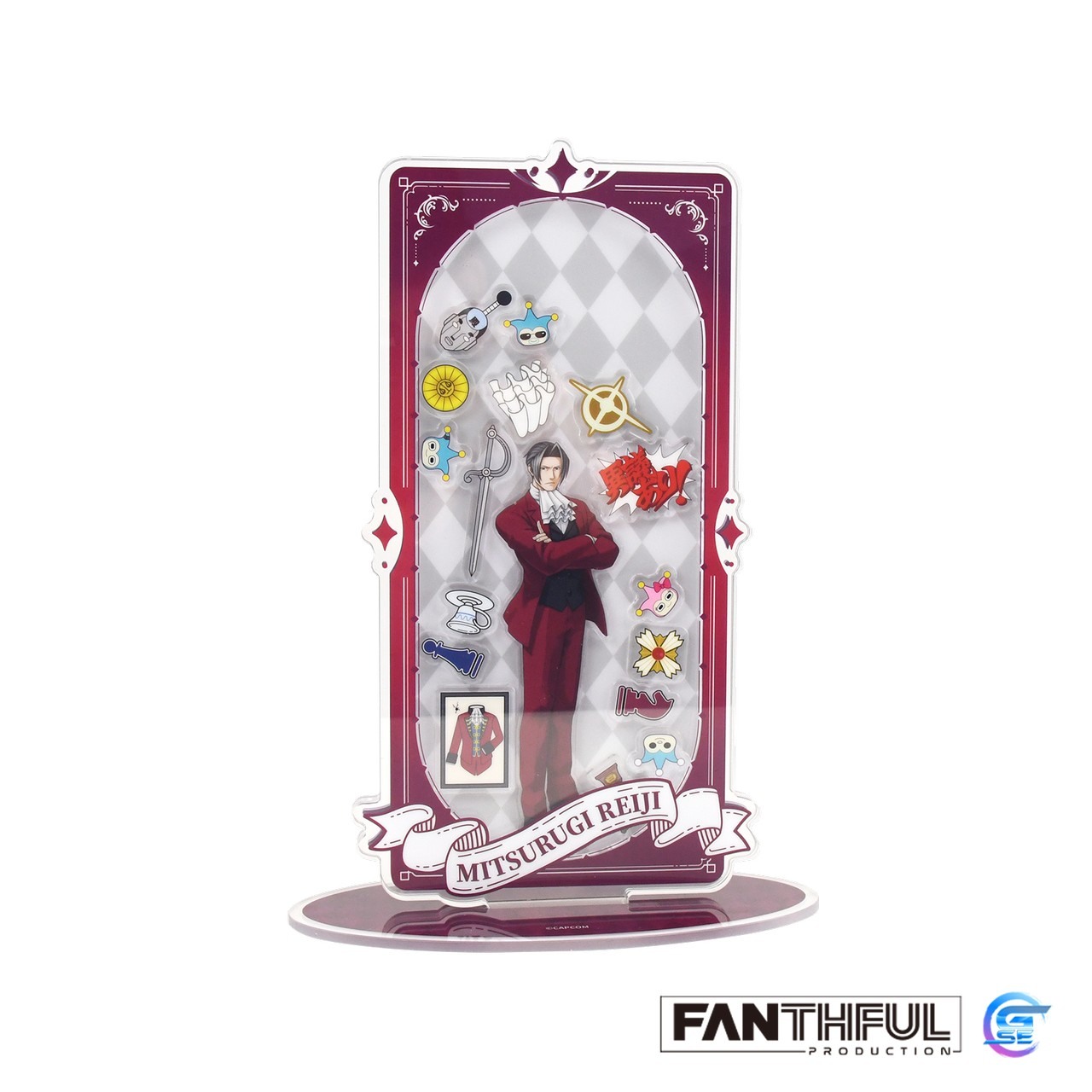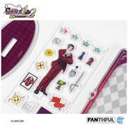 以《逆轉檢察官》系列的主角天才檢察官-御劍怜侍為主題設計。展示了遊戲中的多個角色、經典視覺元素和重要道具,背景為淡色的菱形格紋,整體設計既有趣又美觀,是桌面擺飾的理想選擇。