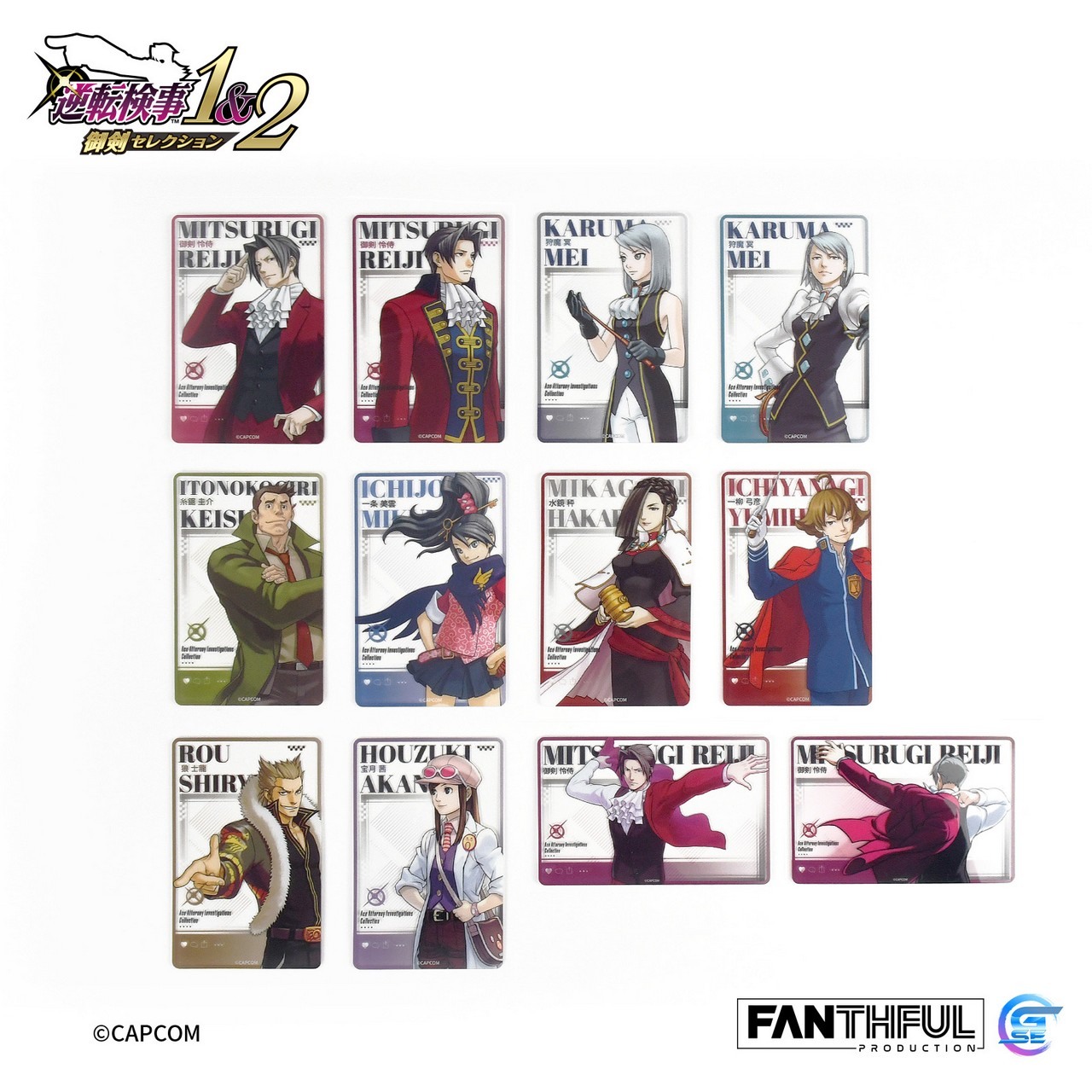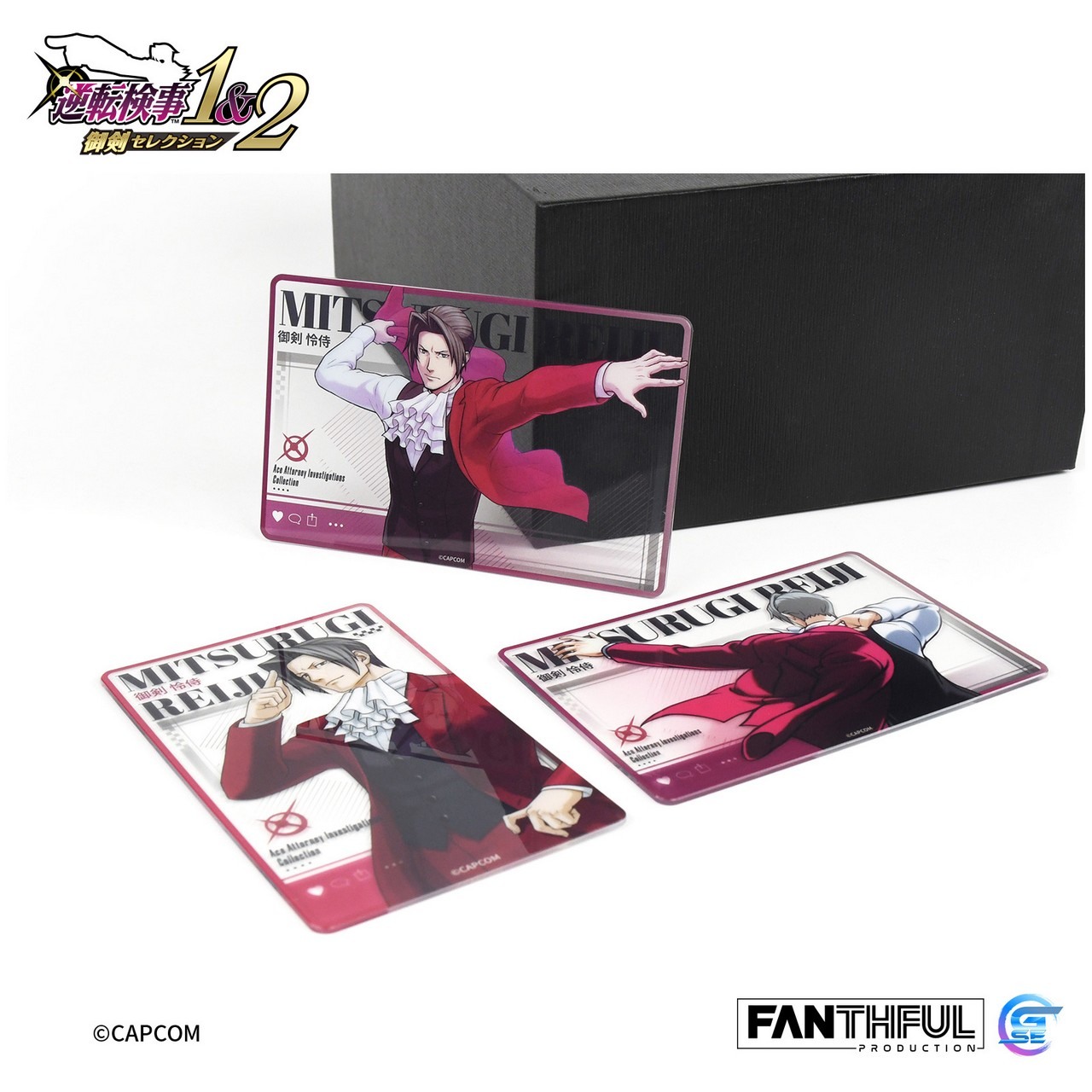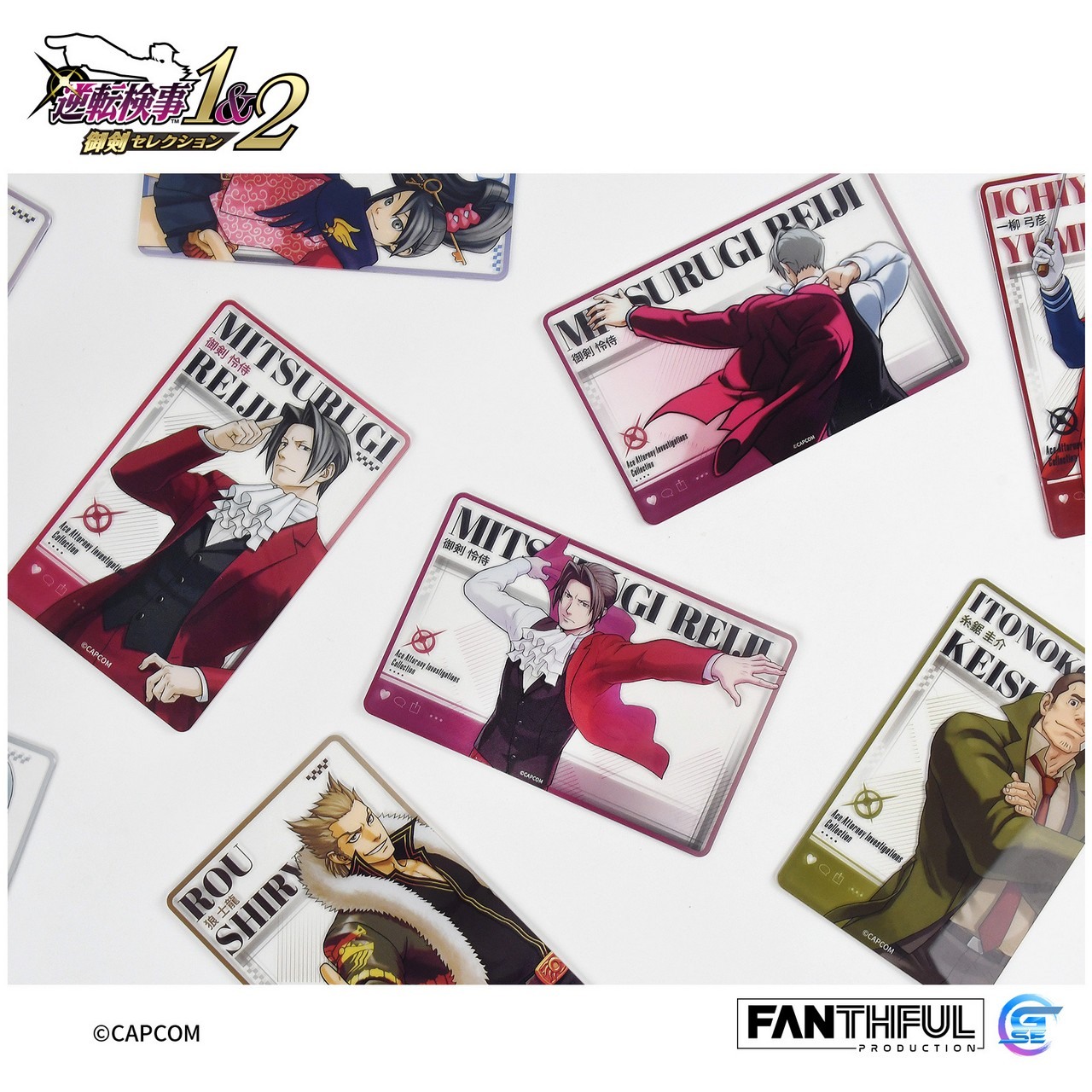 逆轉檢察官 1&2 御劍精選集》中登場角色的立繪為主題的壓克力透卡,共包含 12 款,分別為:御劍怜侍(4 款)、狩魔冥(2 款)、一條美雲、糸鋸圭介、狼士龍、寶月茜、一柳弓彥、水鏡秤。