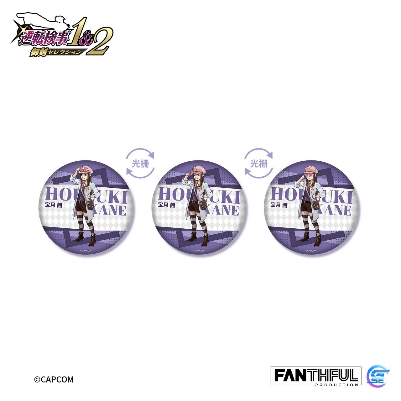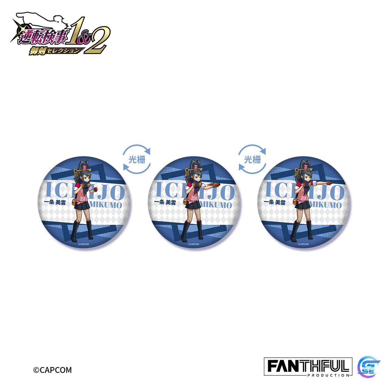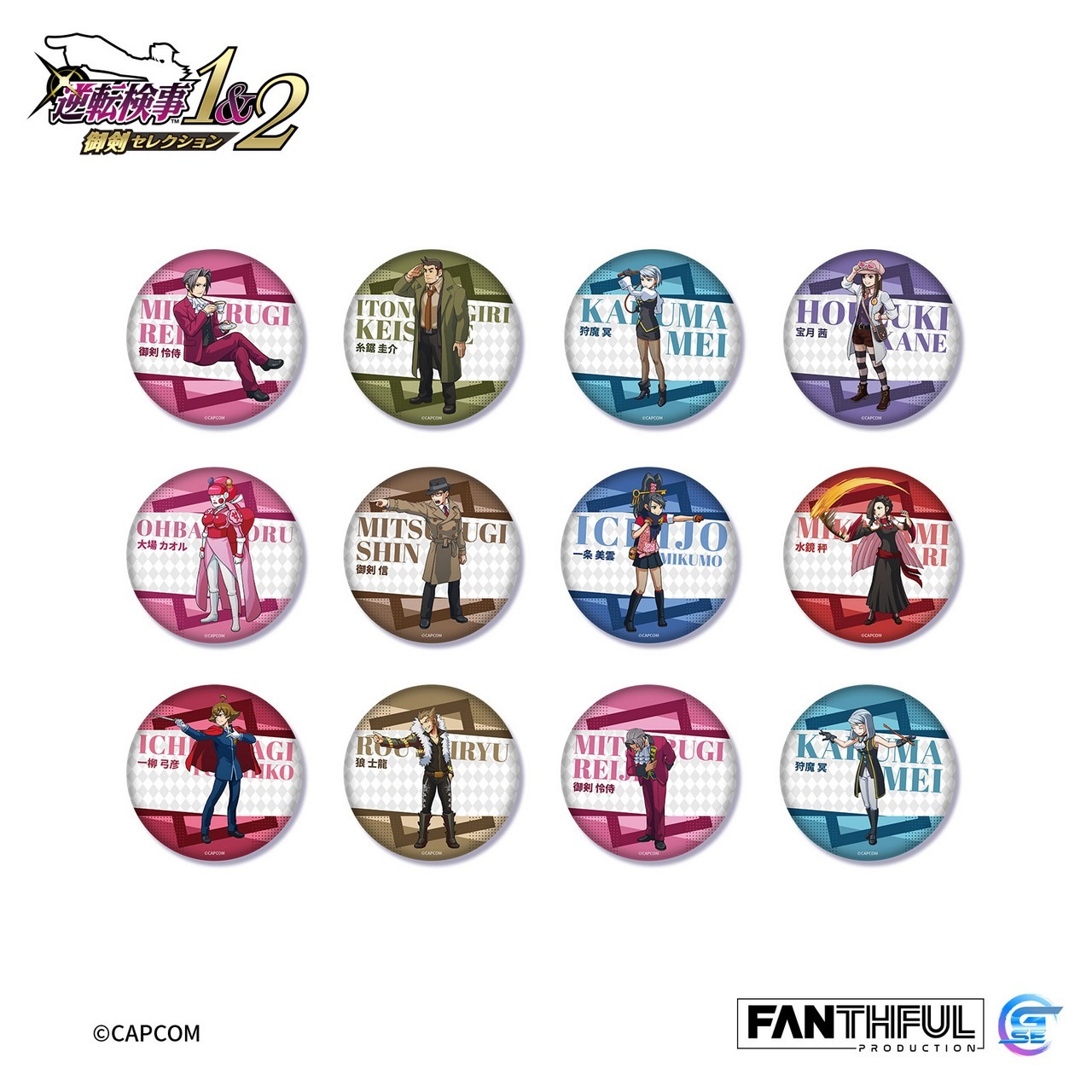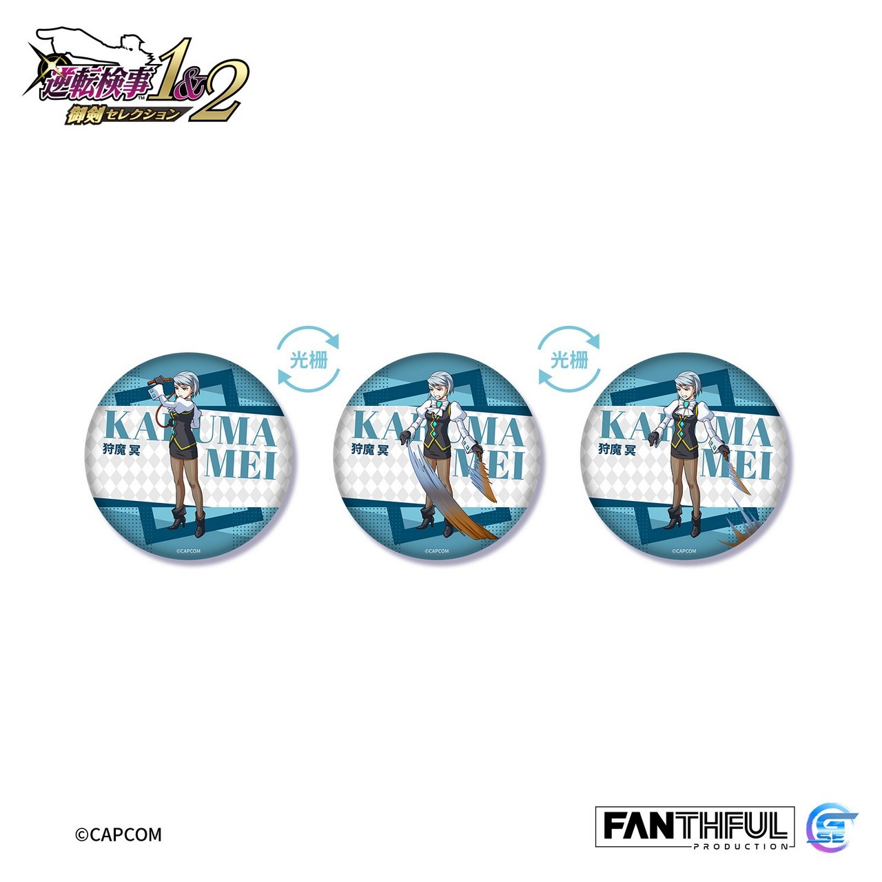 作。本次 FANTHFUL 加入了光柵徽章變化工藝,以生動還原角色們經典的動作和表情。款式共 12 款:御劍怜侍(2 款)、狩魔冥(2 款)、一條美雲、糸鋸圭介、狼士龍、寶月茜、一柳弓彥、水鏡秤、御劍信、大場薰。