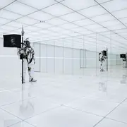 不過就在我已經陷入走投無路的狀態時,剛好認識在 Sony 開發「窗戶(窓)」這個產品的人,這是一個幾乎和一扇門差不多大的顯示器,可以同時進行雙向互動。我可以在東京的窗戶裡看到洛杉磯攝影棚的情況,而且兩邊的影像和聲音都可以即時傳遞。雖然說還是不能直接走進窗戶裡面啦。我借了兩組窗戶來用,總算是有辦法開始進行拍攝工作。就連諾曼也必須要把他叫到窗戶前面來溝通,這真的是非常辛苦,但其實也是滿有趣的體驗。比如說我可以直接在旁邊看到工作人員的作業狀況,所以能夠馬上發出像是「這邊要這樣做,還有這個設計已經取消了所以不需要」等指示。如果是在一般的遠距離上班環境下,可能是每週一次甚至每月一次的報告,會晚很久才發現,陷入「這個明明就已經不需要做了啊!」這類的情況了。自己一個人做和整組團隊一起做的狀況並不一樣,不過當時其他工作室應該也都是很辛苦吧。
