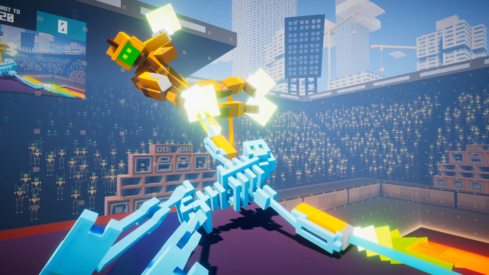 BOTSU》中,玩家將操控布娃娃機器人,和朋友連線或是在分割畫面中展開基於物理基礎的亂鬥。遊戲中每回合都可能出現一些新玩意兒,包含強化道具、重力強化、斷肢、水平面上升等各種變數,讓每場比賽都是新挑戰;而當玩家從比賽中勝出後,不只能獲得經驗值,比賽精華還能拿來炫耀。