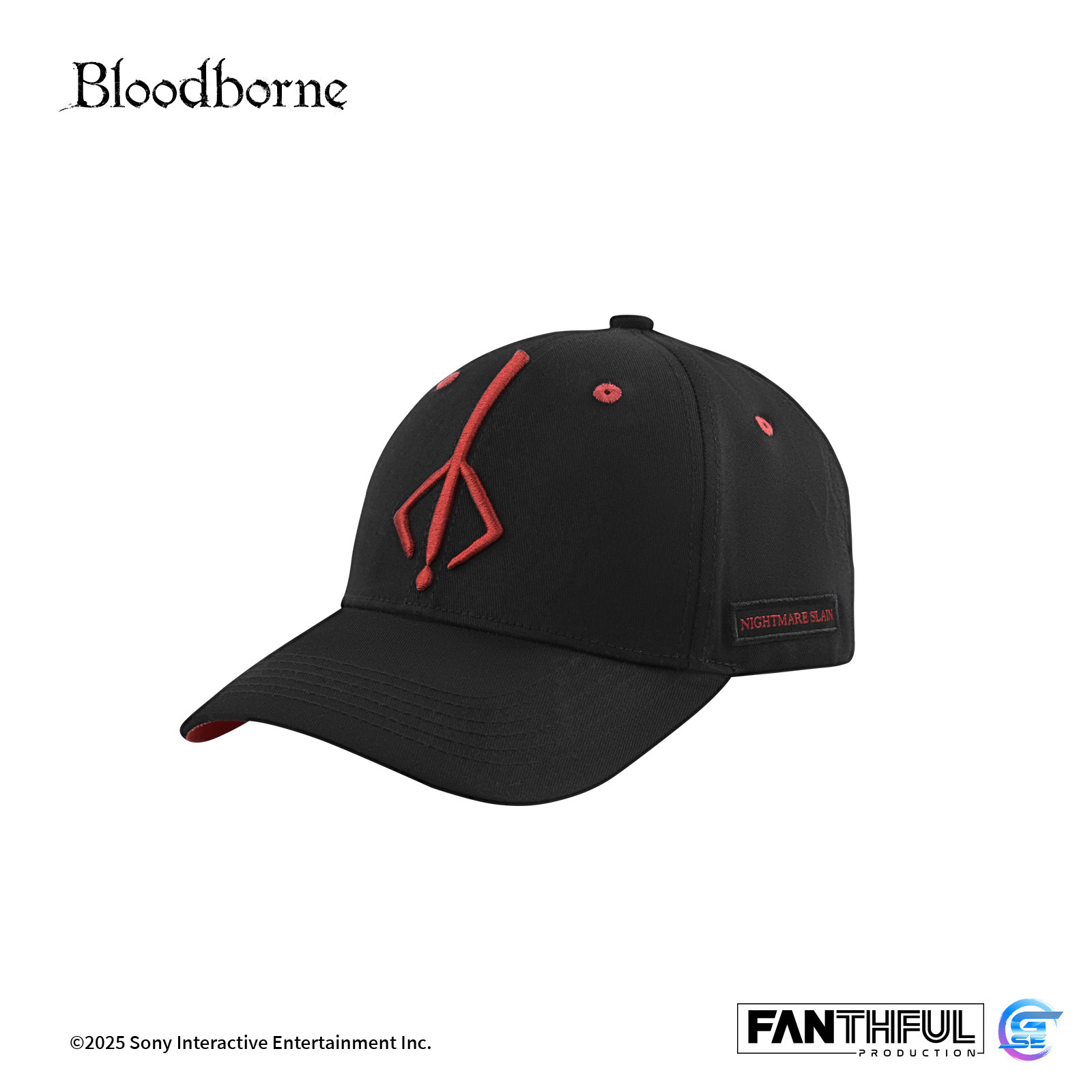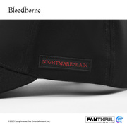正面選取了象徵獵人的卡萊爾文字,刺繡工藝讓圖案整體顯得立體感十足。帽簷的下方平鋪了武器的圖案,側面則是加上了「NIGHTMARE SLAIN」的字樣。