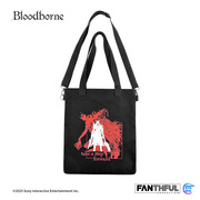 這款帆布包以黑紅色為主要色調,一面為獵人與神職人員怪獸的圖案,另一面則是平舖的獵人武器,而右下角也點綴了「Welcome Home Good Hunter」的字樣。可單肩使用,亦可裝上背帶斜挎,日常通勤彰顯個性。