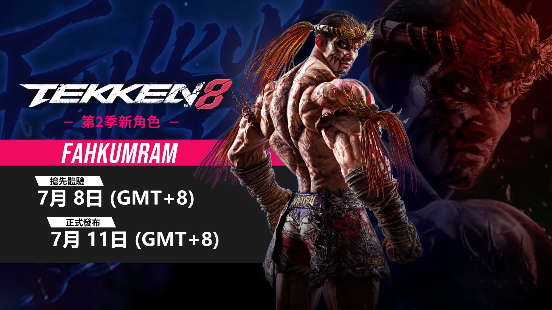 鐵拳 8(Tekken 8)》(PS5 / Xbox Series X|S / Steam)第 2 季第 2 名 DLC 角色 “雷鳴的金翅鳥”「法庫蘭(Fahkumram)」的角色介紹與宣傳影片。