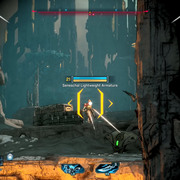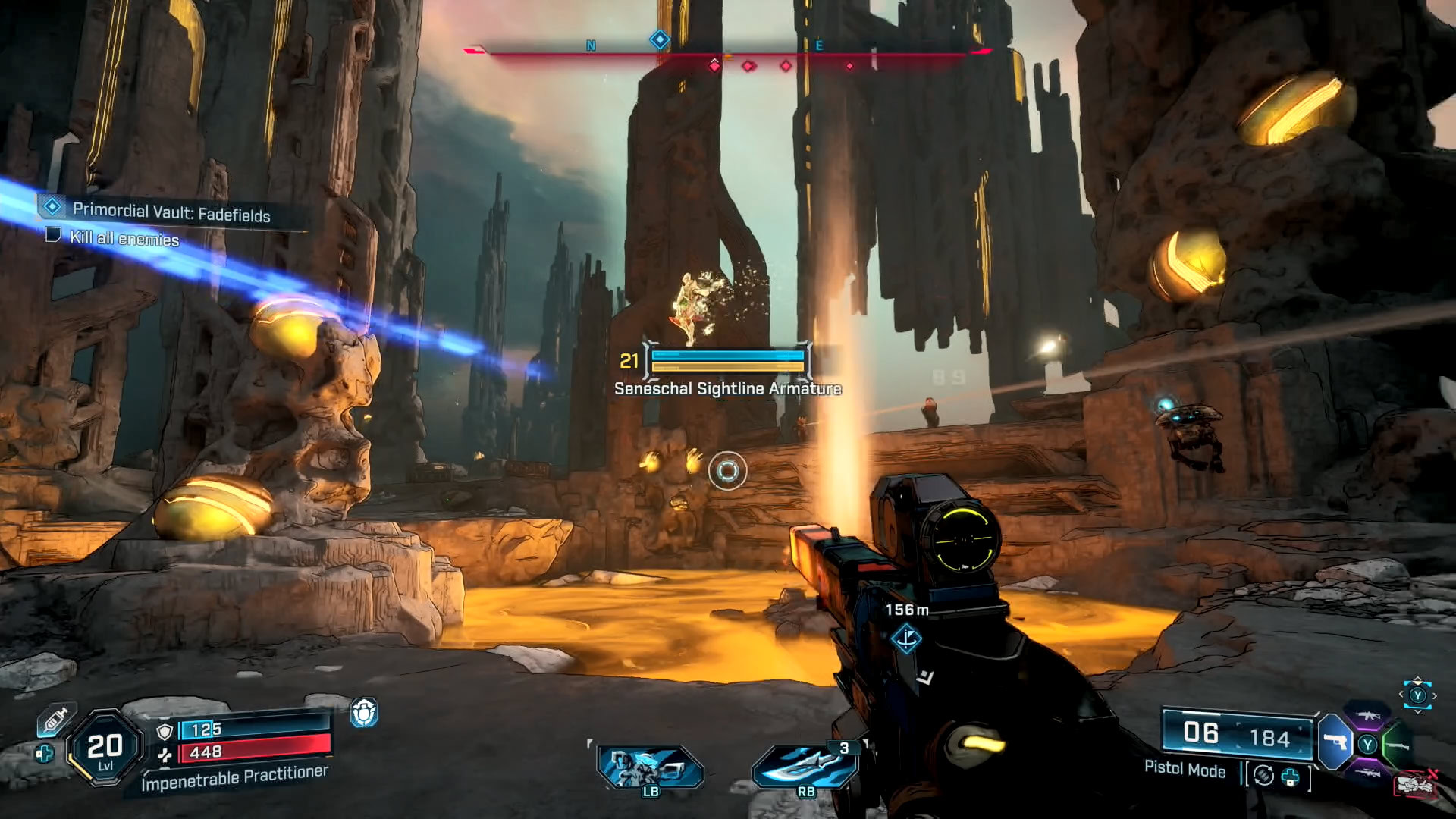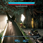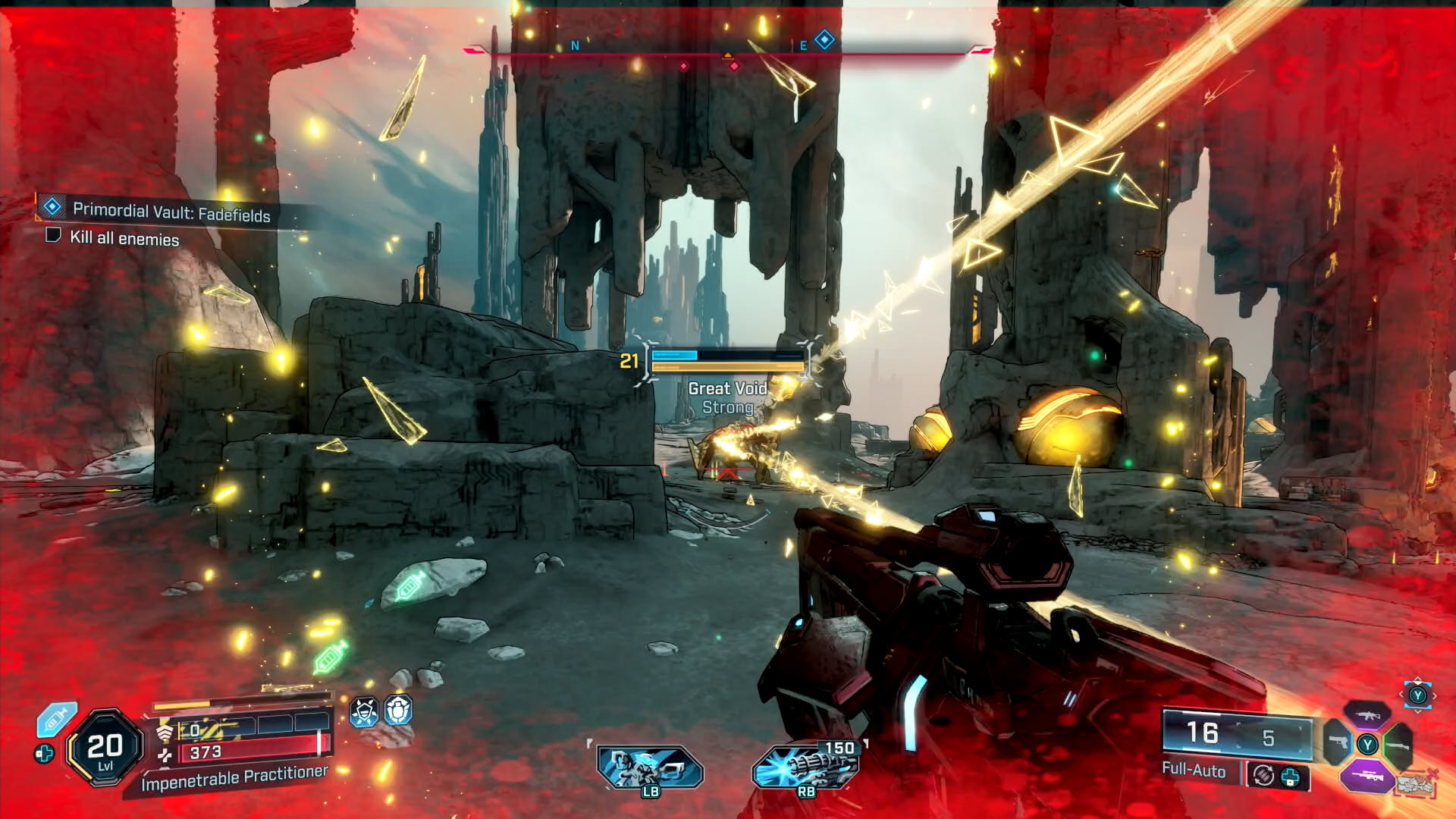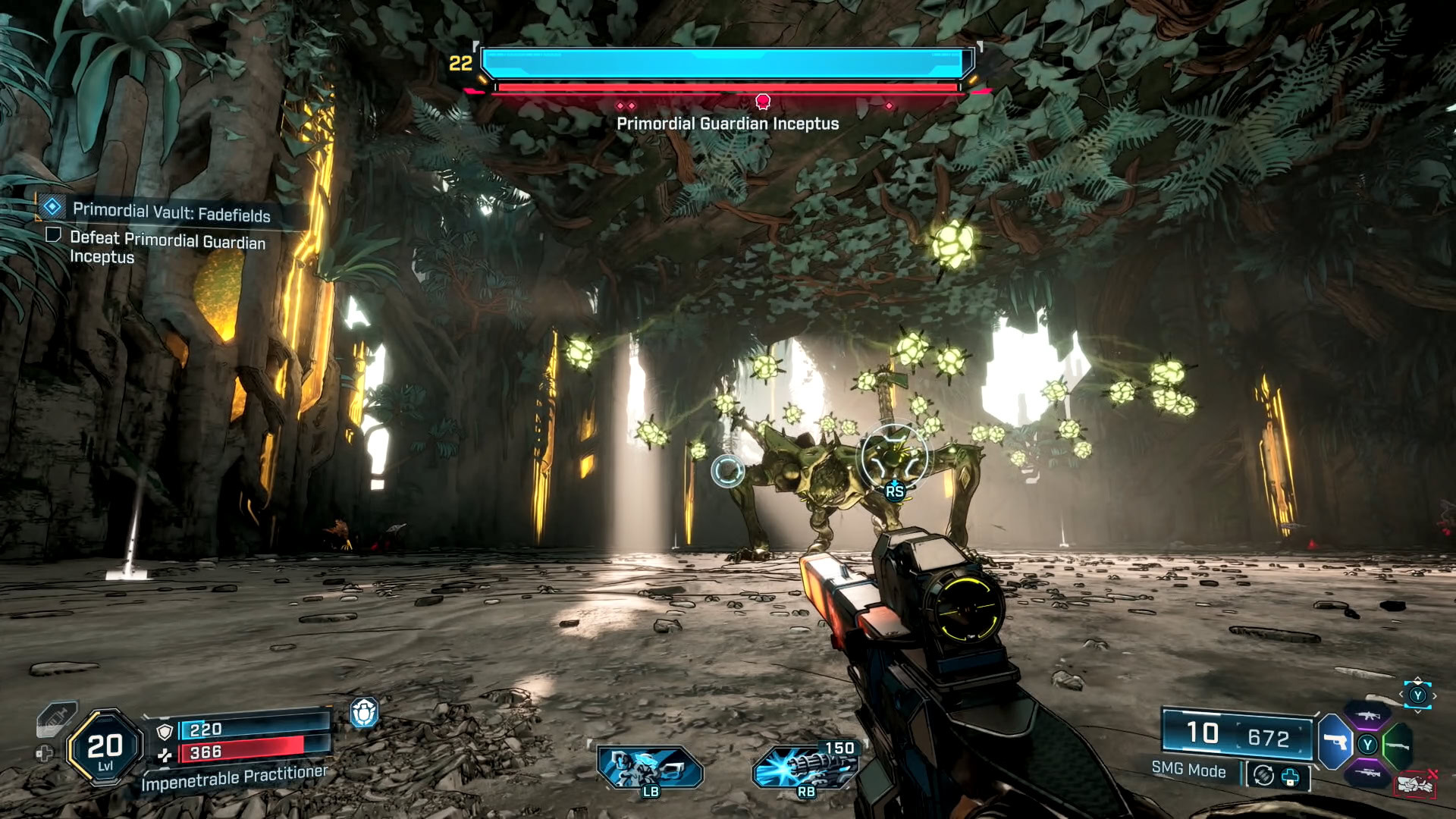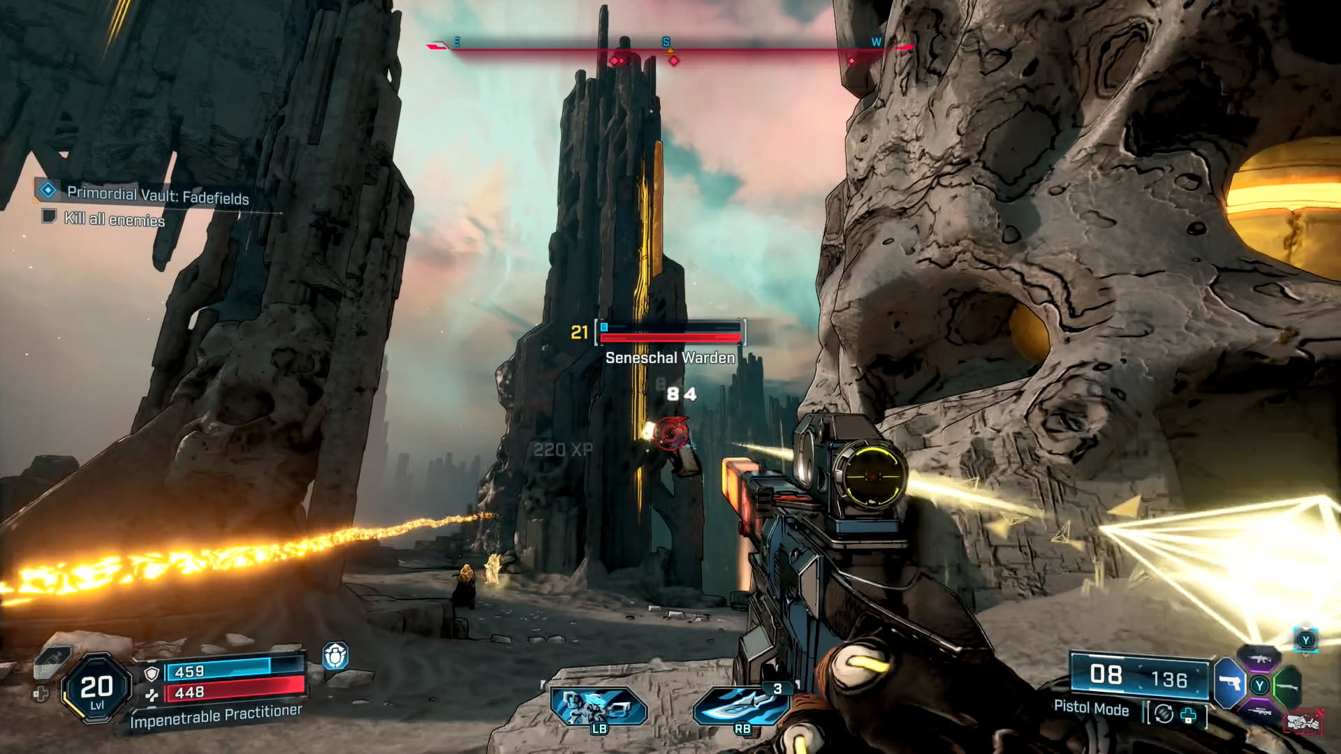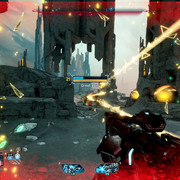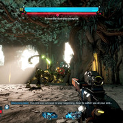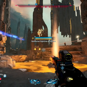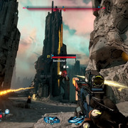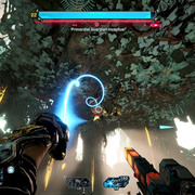 處在異度空間的寶庫是由一個個聳立在無盡深淵的孤島平台所構成,其中包括中繼補給點跟戰場,中間靠單向的跳躍平台連接。玩家可以在各中繼點補充彈藥與購買裝備,接著迎向下一個戰場。每個戰場的地形地貌各不相同,不過都包含許多的掩蔽物跟高低落差,玩家必須活用這些地形地貌來與敵人周旋。由於敵人的數量繁多,正面硬槓敵人火力鐵定是打不過的,PvE 的王道自然是要適度打龜。特別是其中除了皮薄的小怪之外,還會出現一些皮粗血厚的菁英怪,即便槍槍爆頭也沒辦法一下打死,繞一下掩蔽物捉迷藏是基本功。