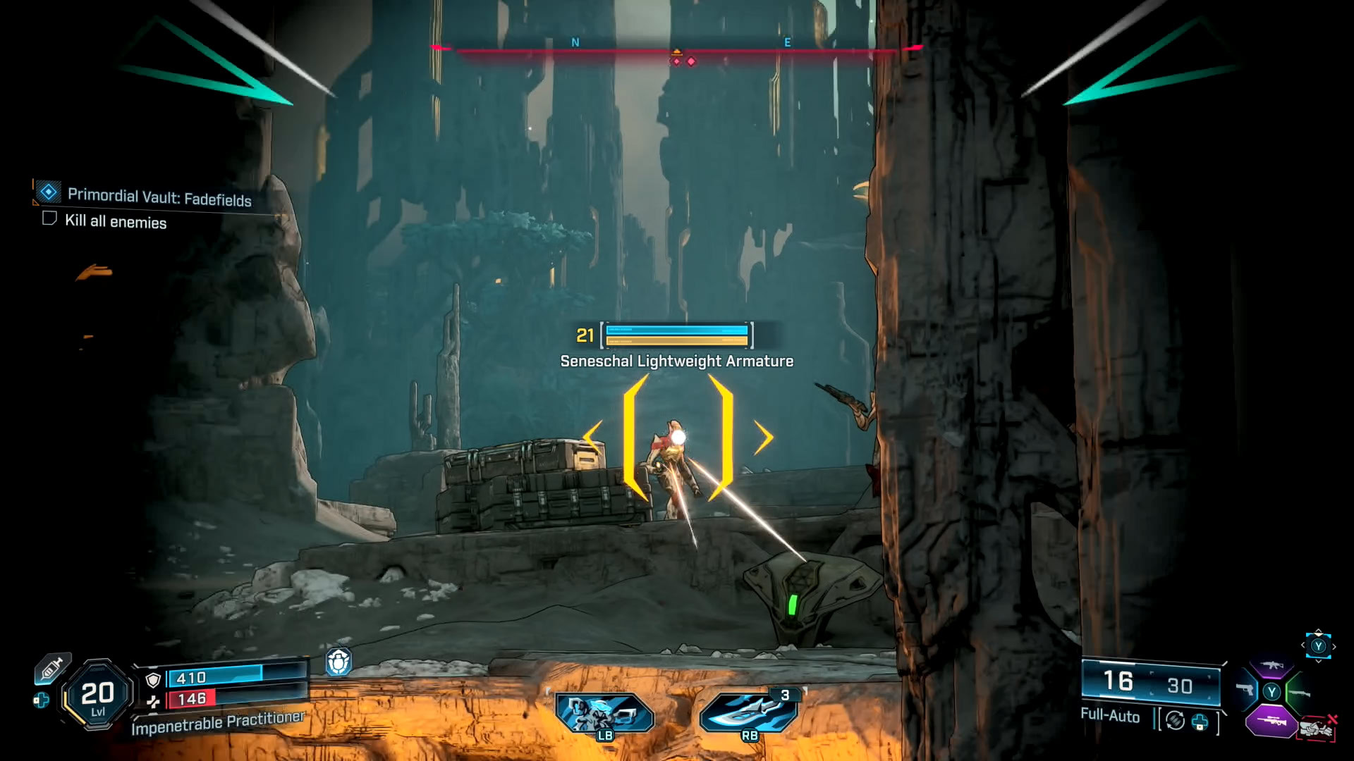 試玩存檔的角色等級為 20 級,比主線試玩的等級高出許多,各項能力參數與技能等也都有提升過,手頭的武器也強上一截。不過寶庫中敵人的密度跟強度也高出許多,而且因為戰場是一個個孤立的封閉區塊,沒有辦法逃脫,最多只能依賴地形掩護,整體節奏跟挑戰性很高,喜愛戰鬥跟打寶的玩家想必會如魚得水。